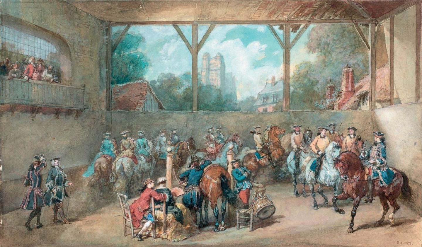 Active mainly between c.1740 and c.1755, the painter and draughtsman Louis Aubert remains a shadowy figure in 18th century French art. The son of the first violinist at the Paris Opéra, he was himself a professional musician and composer as well as an artist, although nothing is known of his training. Like his father, Aubert was active at court, and by 1742 is named in documents as an ‘officier de la Chambre du Roy’. That Aubert was well regarded in court circles is shown by the fact that in 1745 he was commissioned to paint three decorative works for the Château of Fontainebleau, as well as four overdoors for the apartments of the Dauphin at Versailles. He also produced landscape paintings for the châteaux of Compiègne, where his works decorated the rooms of Madame de Pompadour, and Choisy-le-Roi.