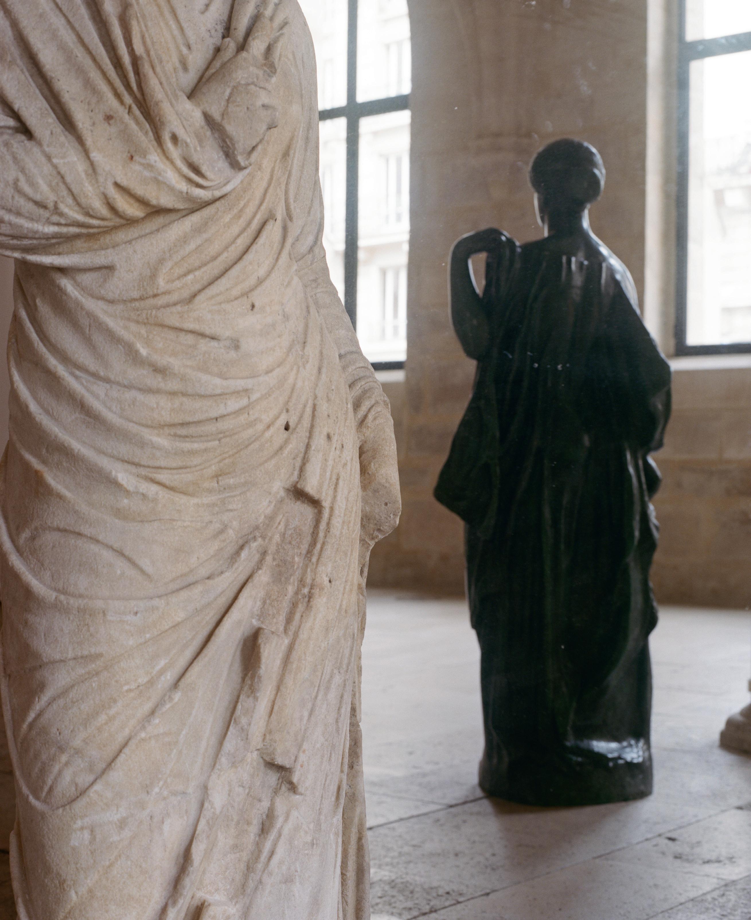 Ce que Brague nomme la « voie romaine », Simon Porte Jacquemus et ses complices l’incarnent à travers un théâtre plastique de la romanité, héritière et réinventrice tout à la fois. Là où le philosophe exalte la traduction comme reformulation de la mémoire, éclairée par l’intelligence du meilleur de cette aventure pour aller vers un meilleur, Mythes est une traduction à son tour de la mémoire des formes antiques dans le langage du présent. Chaque restauration d’un antique, chaque création en bronze ou en étoffes est une réécriture d’une mémoire dans le vocabulaire du présent.