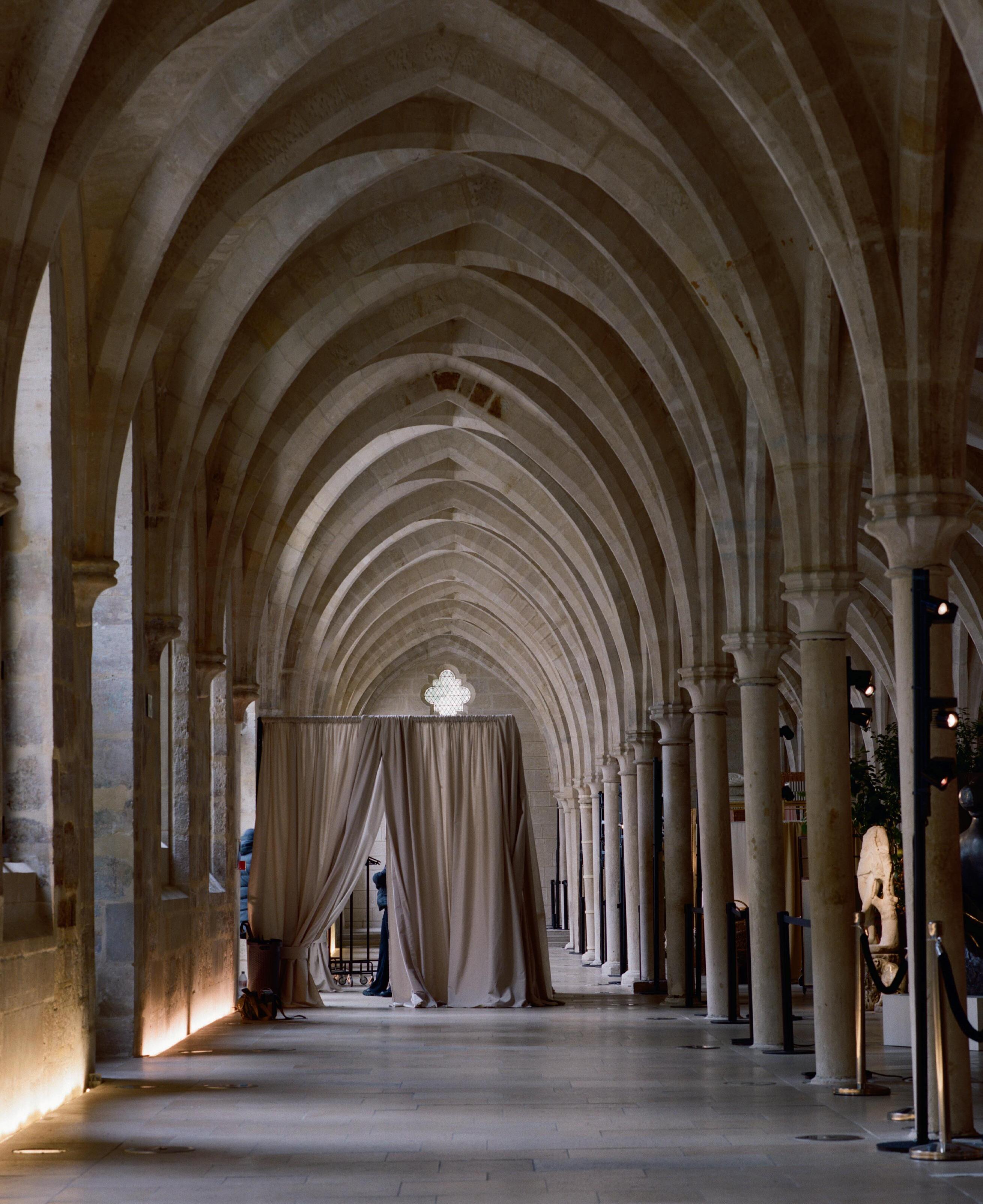La magie tient moins à l’effet de surprise dans ce Couvent des Bernardins, qu’à une opération plus secrète : les formes ne sont jamais répétées, elles se ré-éclairent. Un pli, de la toge à la cotonnade contemporaine ; un déhanché, du bronze à la chemise ample ; la mémoire change d’angle. Rien ne se fige : la forme antique demeure un principe de croissance, source de la mode, irrigant matières sans perdre sa tenue.