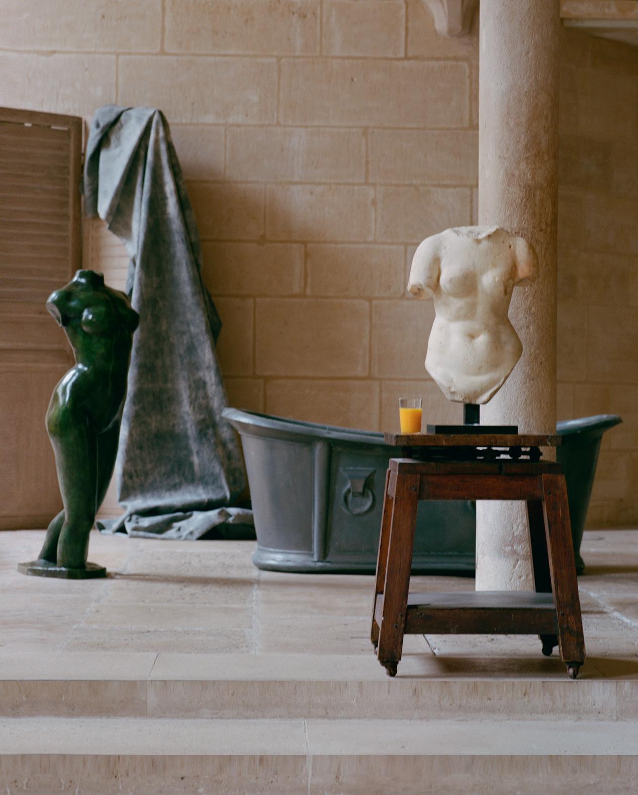 Mythes est avant tout une prolongation inspirée du jeu raffiné auquel se livrent les Chenel. En déposant des fleurs dans des urnes antiques, en érigeant des chapiteaux en tables basses, en offrant une existence nouvelle à une stèle romaine du IIe siècle – retaillée par les Byzantins pour soutenir quelque autel, puis désormais métamorphosée en guéridon –, ils poursuivent depuis plusieurs années une rêverie singulière sur la continuité des formes et la survivance des matières. Ils invitent à vivre naturellement avec ces œuvres, à se les approprier.