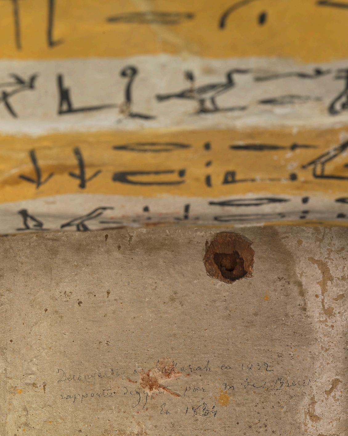 Private American Collection, acquired from the above sale. The sarcophagus was opened in 2014, and details of its discovery in Sakara 1832 and acquisition by Jules Xavier Saguez de Breuvery and exportation from Egypt in 1834 were exposed in a handwritten note on the interior.