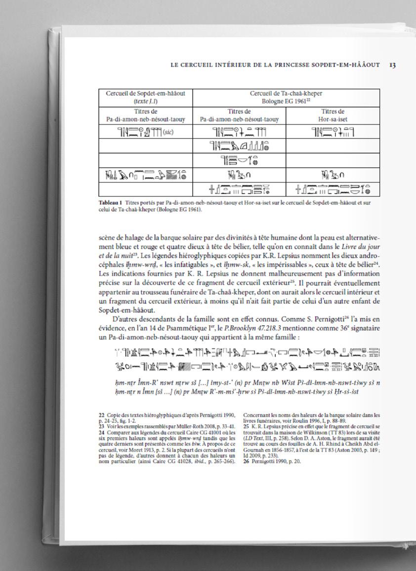 Raphaële Meffre, ‘Le cercueil intérieur de la princesse Sopdet-emhââout et la famille des rois Roudamon et Peftjaouâuybastet’, Monuments et mémoires de la Fondation Eugène Piot, 94 (2015), pp. 7-59.