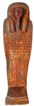 The earliest symbolic role of the ancient Egyptian coffin was as a ‘house’ or eternal dwelling for the deceased. Outer coffins tended to be rectangular, imitating the shape of a tomb or shrine, while inner coffins were mostly anthropoid in form from the Middle Kingdom onwards. From the New Kingdom, coffins were increasingly modelled in forms and dress resembling the living. A letter addressed to the coffin of Ikthay, written by her husband Butehamun in the 21st Dynasty, reads ‘Send this message and say to her, since you are close to her: “How are you doing? How are you?”’. Coffins were seen both as an aspect of the self and as separate to it.