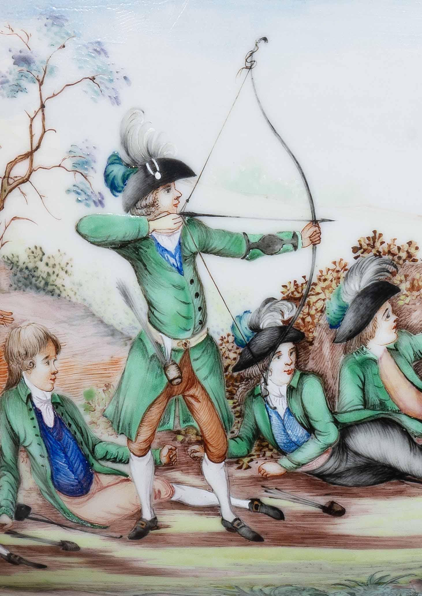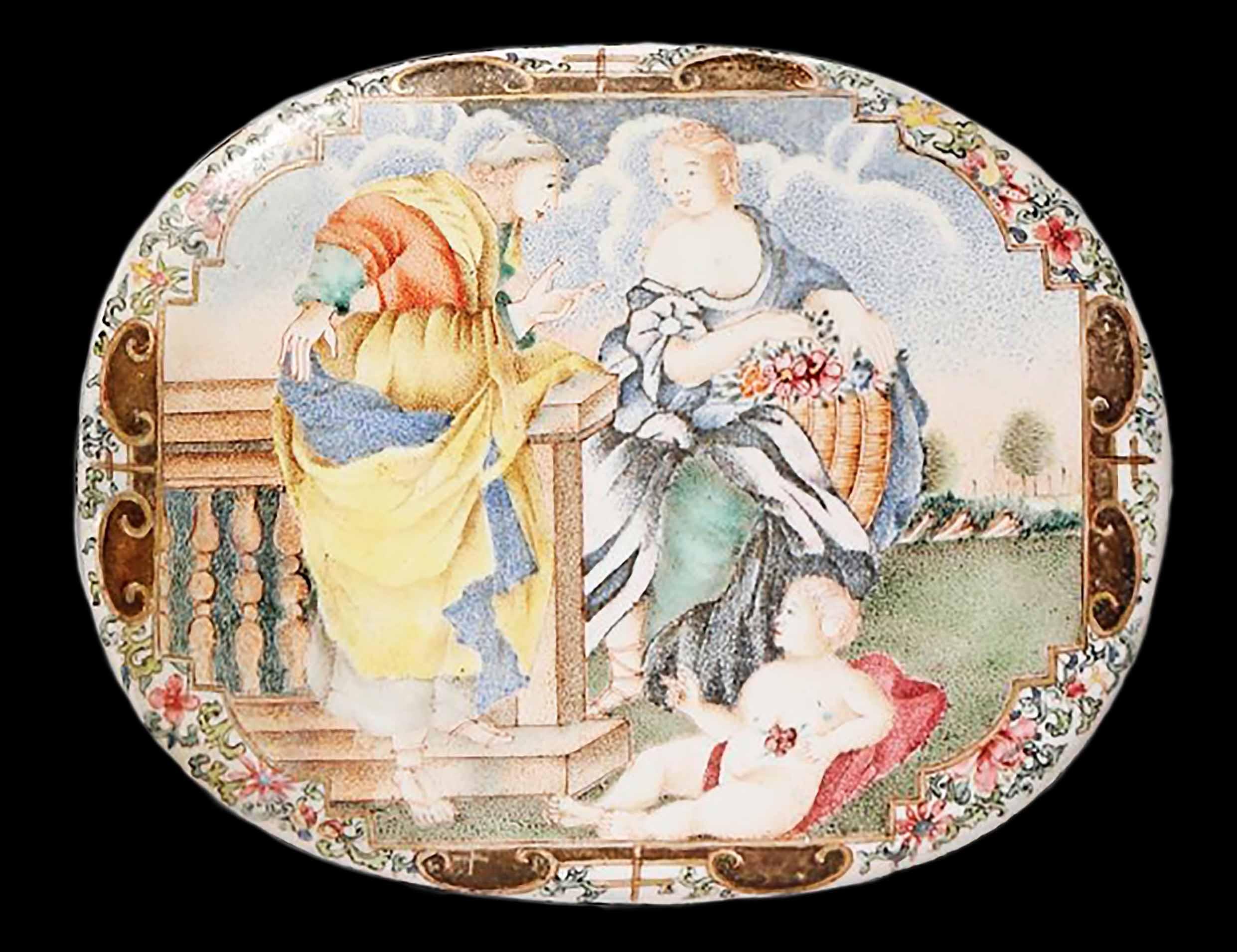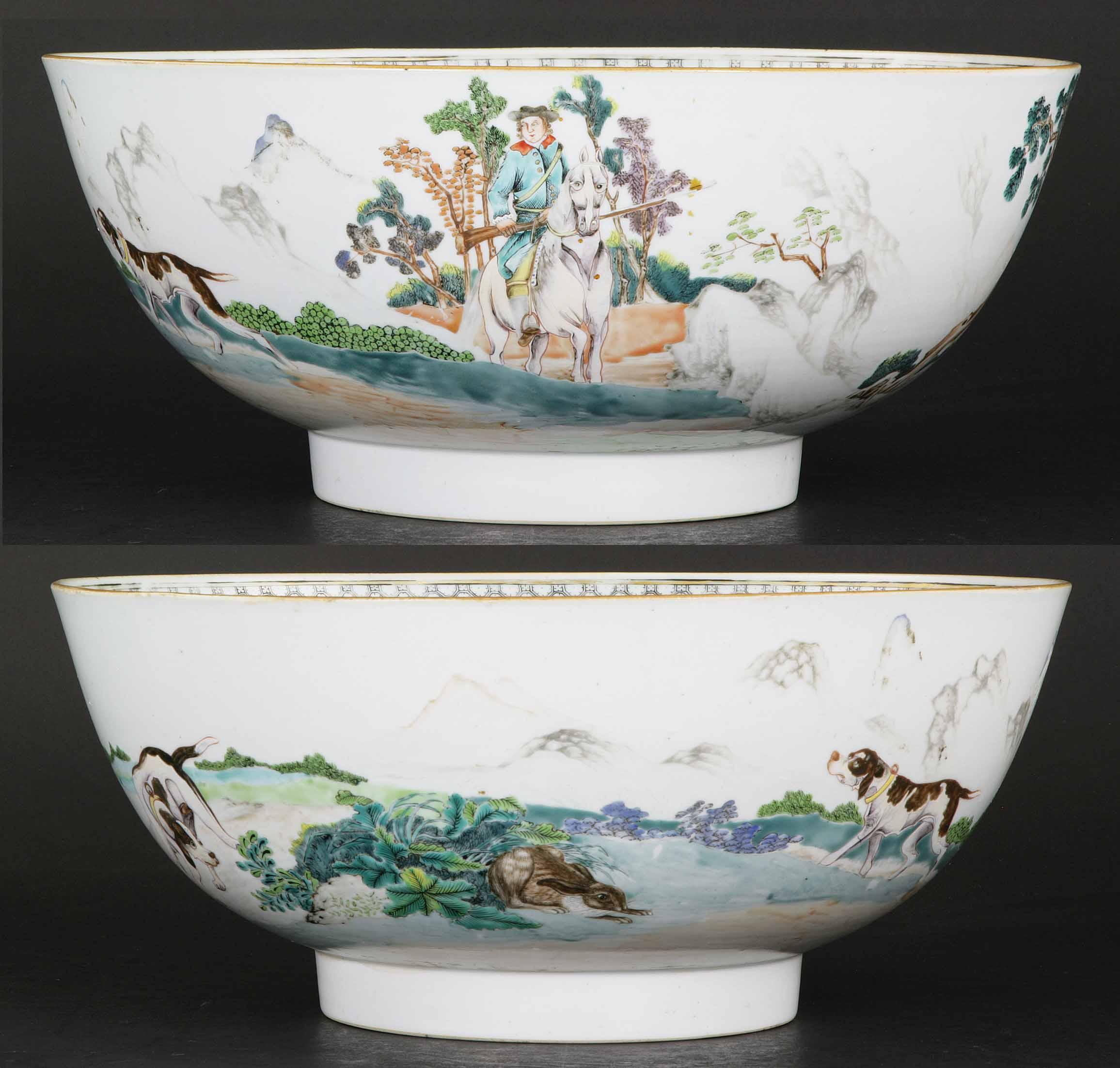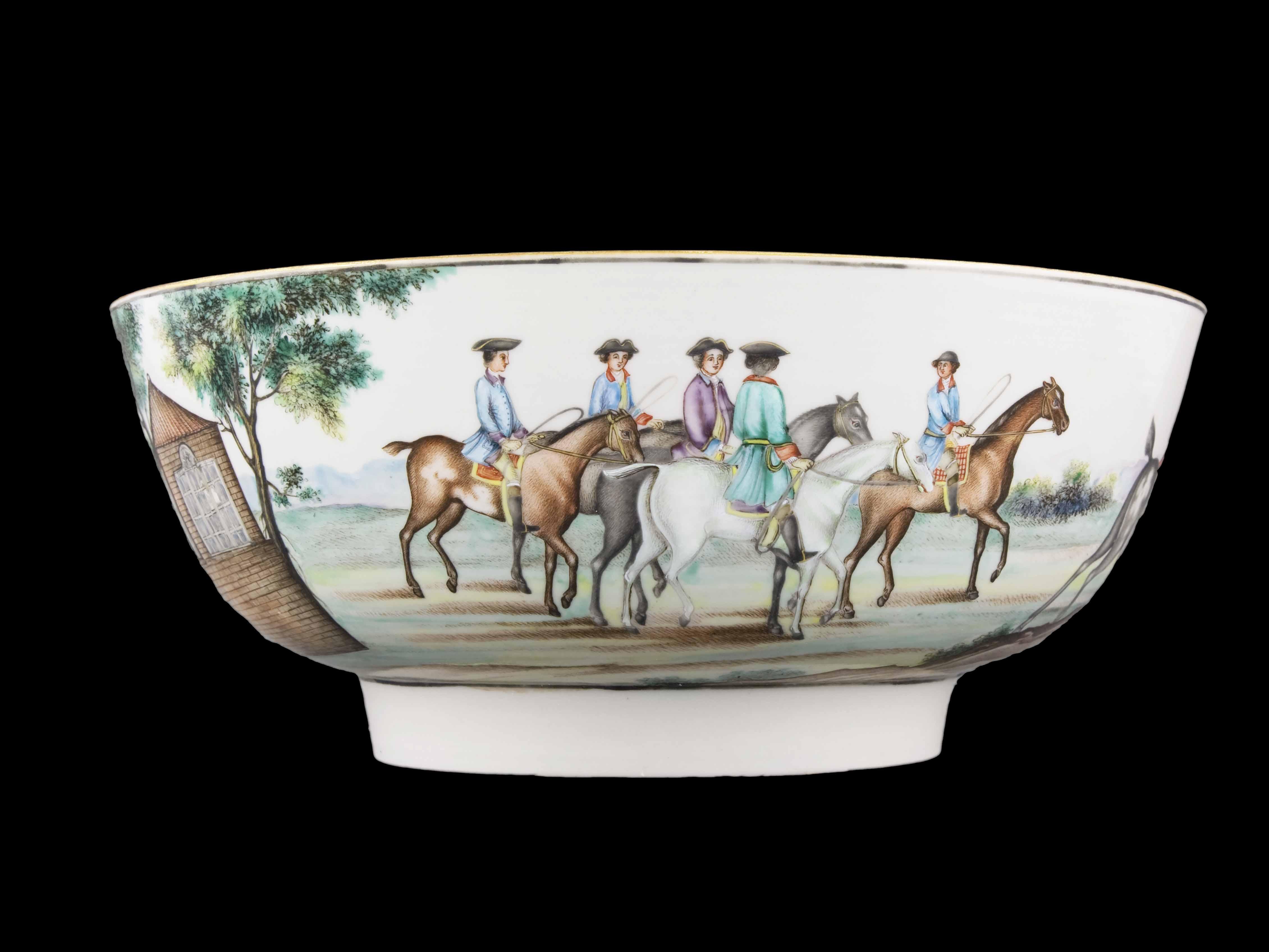 It was the discovery of the hunt bowl that made me realise that there had to be a workshop, under the auspices of the British East India Company, that continued to produce pieces of exceptional quality long after most workshops were prioritising quantity over quality. This led to further research and an article I wrote for The Magazine Antiques where I named the workshop “The Purple Foliage Workshop” after the unusual purple enamel used in the foliage of much of their production. We have included a version of the article in this catalogue.