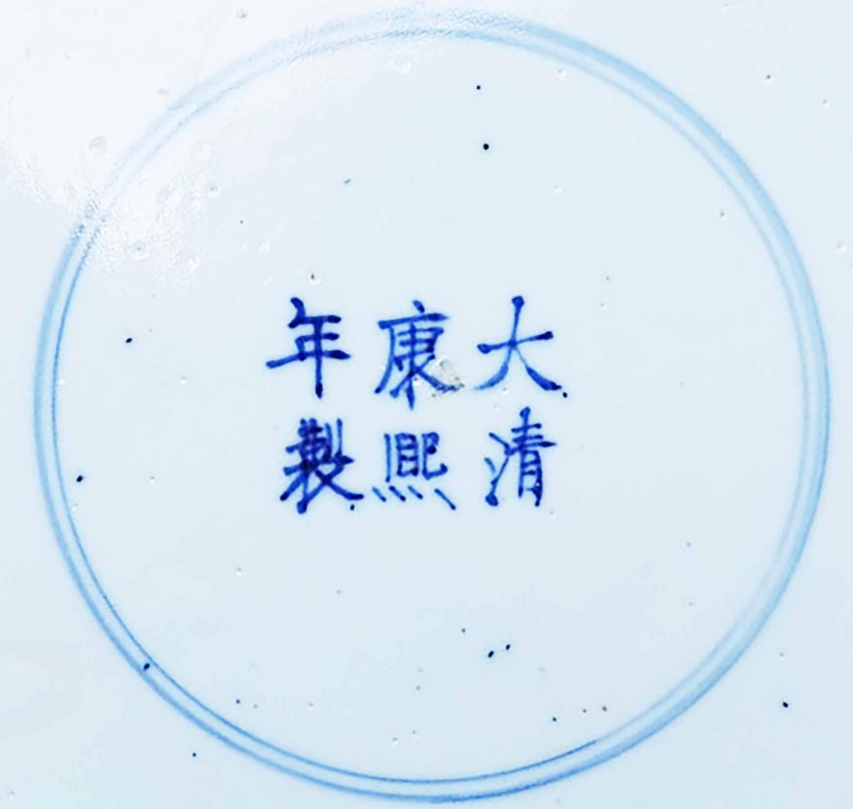 The arms, painted in underglaze blue, are of Prince Eugene Franz of Savoy-Carignan (1663-1736) augmented with the arms of Austria, an honour granted around 1700, and with the order of the Golden Fleece around it. Eugene was given this order in 1687 the same year as Joseph I, Archduke of Austria.