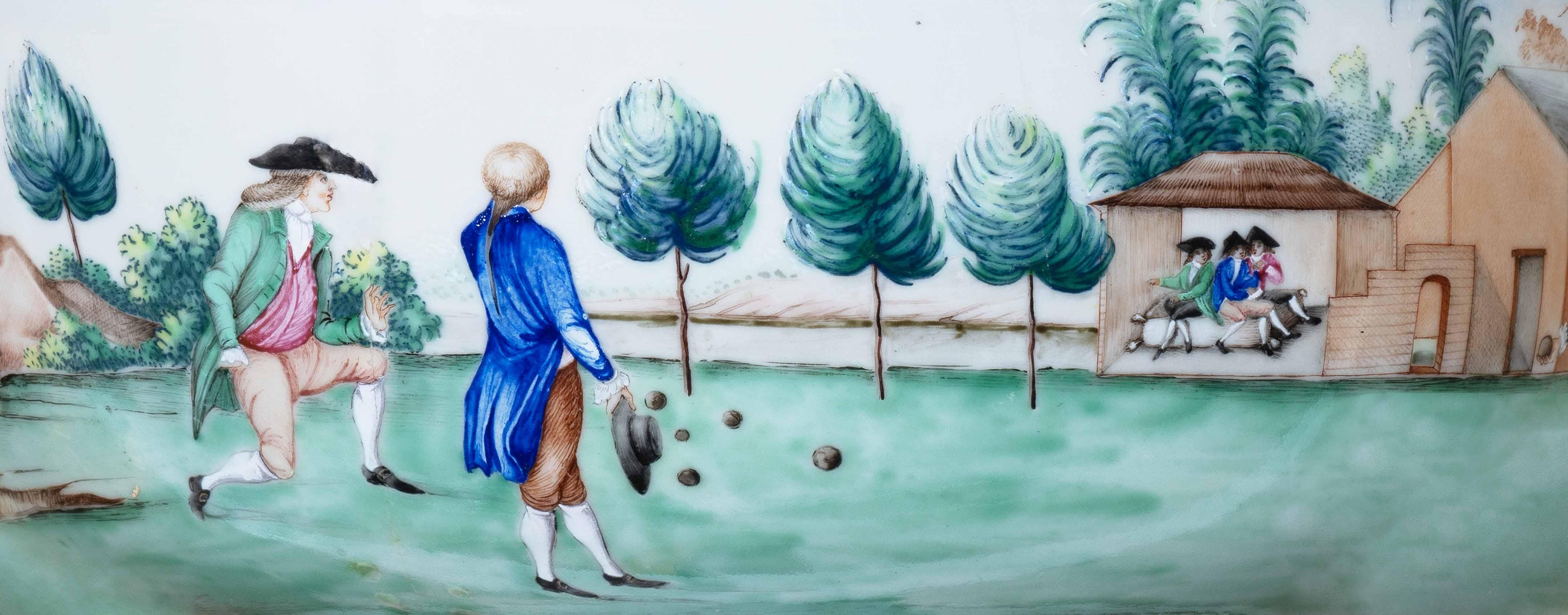 Recently we discovered a third European sporting subject bowl that belongs to this group depicting lawn bowls.