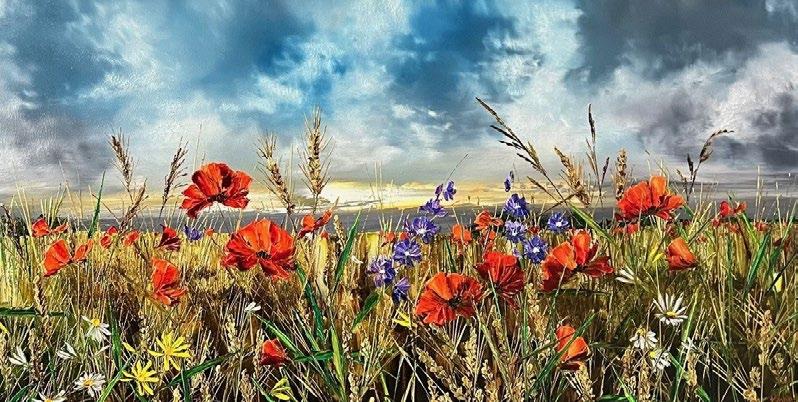 My signature style is a blend of pop art and geometric patterns fused together to create some very unique and optimistic landscape paintings of the countryside and the coast. I am renowned for this style. However I also work in other styles, including softer textural portrayals of the world to darker dreamscape atmospheric paintings.
