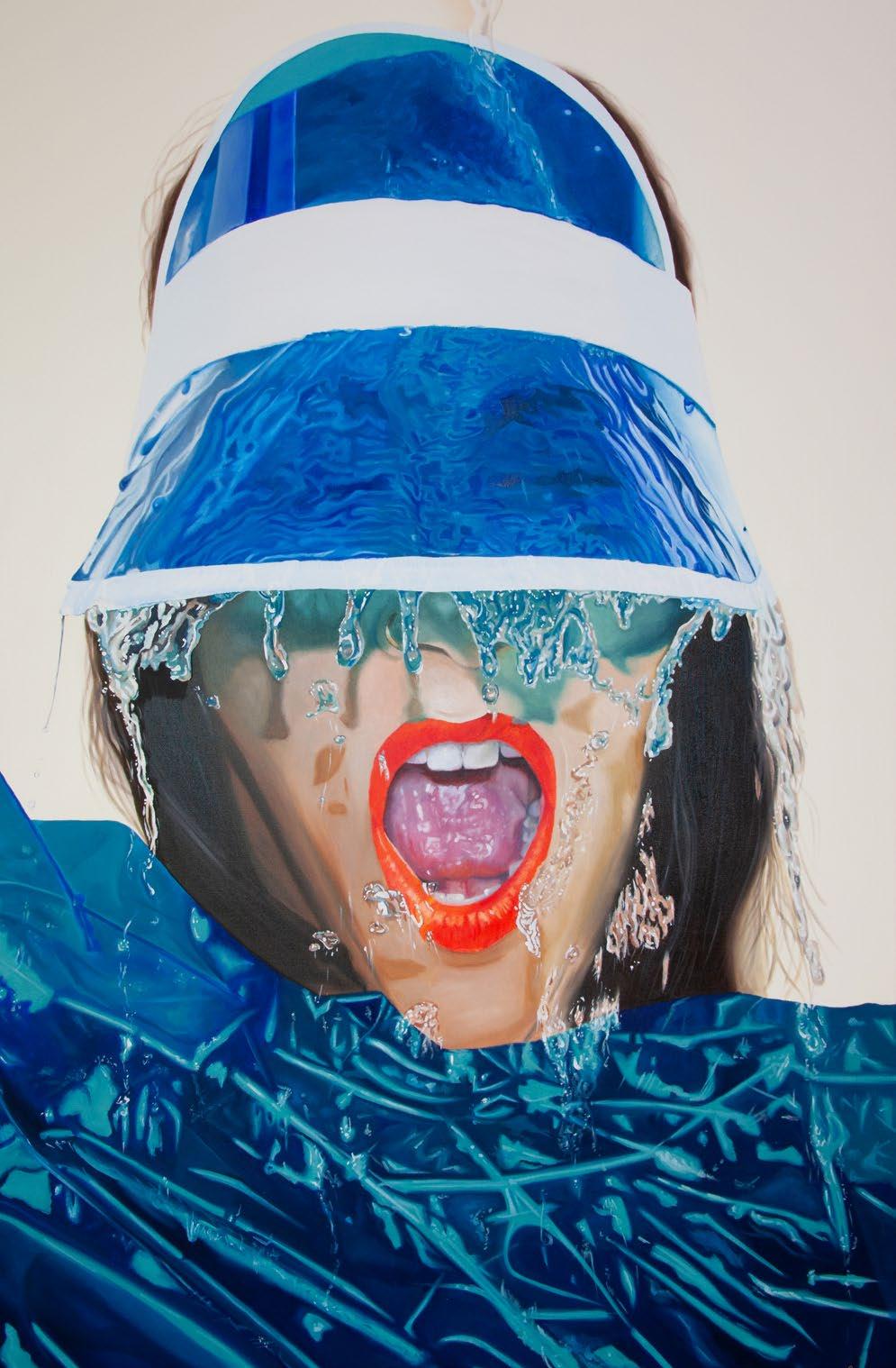 Bold, dramatic and fearless, Nana Artamonova’s Mermaid depicts a young and beautiful woman whose gaze is instantly held by the beholder. Splintered with splashes of paint, Nana skilfully camouflages the vibrantly coloured streaks with the figure’s hair. As suggested by its title, one can only speculate that the figure has been submerged in water, evident in her thin wet strands of hair draped across her face. Indeed, Nana’s Pop Art influence is certainly prevalent in this particular artwork, not only in the use of large areas of uninterrupted colour, but in the artist’s brush strokes which mimic those of Jackson Pollock just preceding the Pop Art movement.