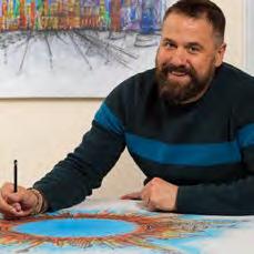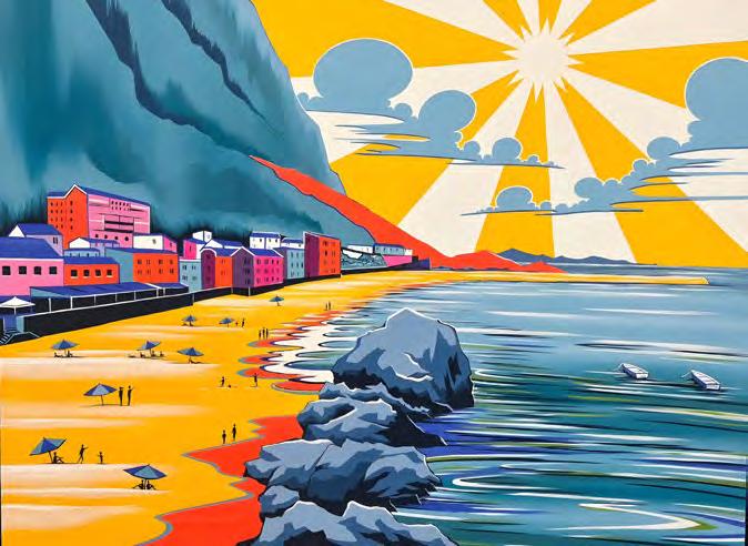 He aims to inspire one to feel uplifted and truly engaged with the natural world. A unifying theme that runs throughout his paintings is that of escapism. He captures idyllic places and sunnier visions of the world to escape the darkest days we may find ourselves in. The theme of optimism is explored through his geometric Pop Art, as he shares the purest parts of his recovery with the viewer.