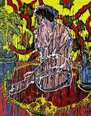 primitivism of fragmented human anatomy and sheds light on the troubles of mankind. Likening the skull-like figure to Munch’s 1895 lithograph titled The Scream , the gravitas is palpable as Ambrose aims to reveal an honest representation of his own emotions carried by unwavering faith.