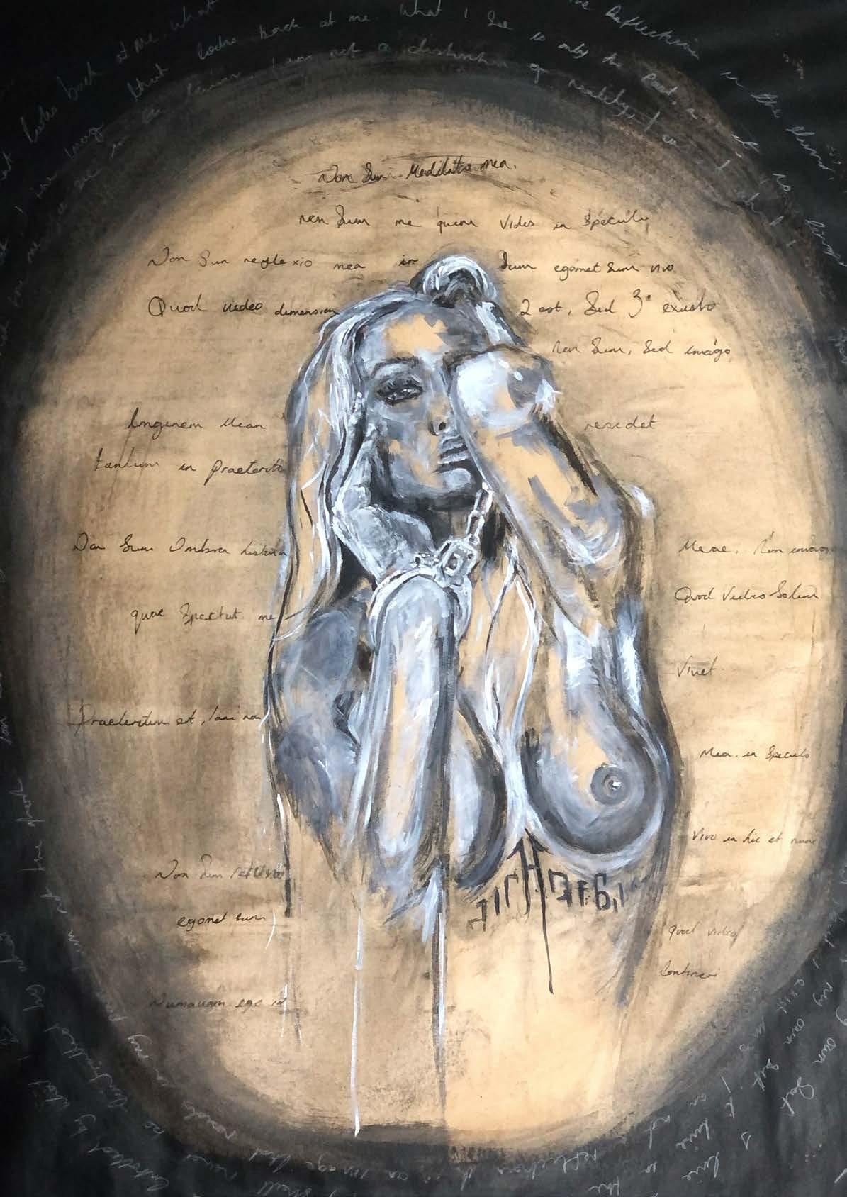 My work process includes combining modern digital art with traditional hand painting. I draw all portraits digitally, creating the complex multilayers of the background and the surrounding colour scheme. Then I print the artwork on a high-quality canvas. After printing, I paint over the canvas by adding multi mixed media mediums, creating textures, and add acrylic paints by hand. These artworks are a mix of print, acrylic golden paint and textures.