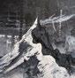 Her first explicit engagement with environmental concerns was her 1968 public art performance Rice/Tree/Burial, which was re-enacted in 1977 on a larger scale. Each component of the performance is rife with symbolism. In her own words, the planting of rice denoted the ‘beginning’, the setting of something into motion, as encapsulated in a ‘universal’ grain. Her chaining of trees symbolised linkage and connection, but also interference with growth and the need for ‘selection’ in the artistic process. Burial of her poetry was intended as a means of forming the ‘essence of thinking processes’, acting as a metaphor for human consciousness and the transmission of ideas. Central to this ‘progression’ is a dialectic dynamic, one that deploys evolutionary theory in seeking to form the ‘Event’ (objective reality), as contrasted to the reality we perceive which is permanently in flux and inherently interdependent.