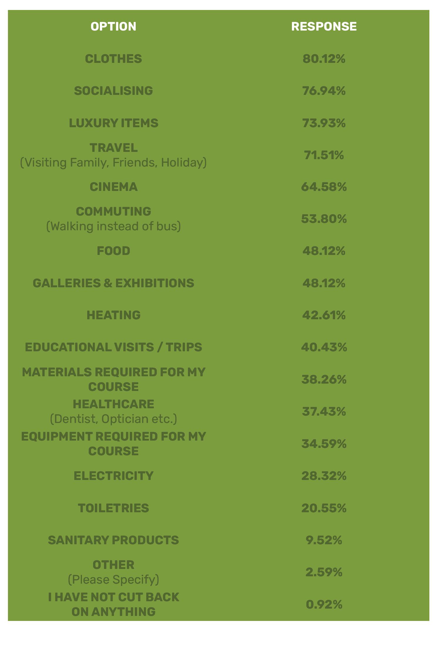 TOP AREAS STUDENTS HAVE CUT BACK ON SINCE THE BEGINNING OF 2022