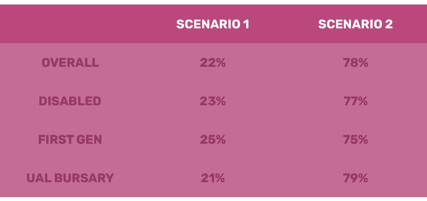 This indicates that the safety net of family may not be as readily available to all students, and demonstrates the need for UAL’s targeted approach to financial support.