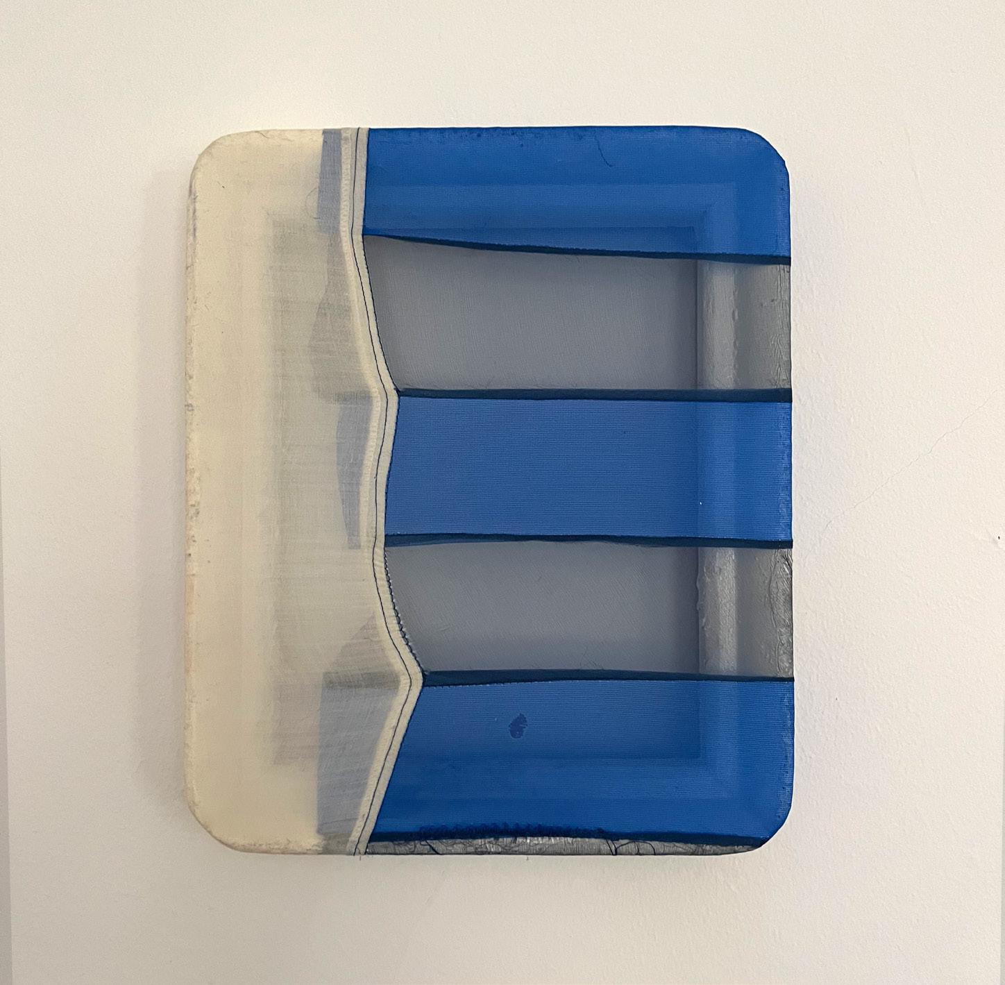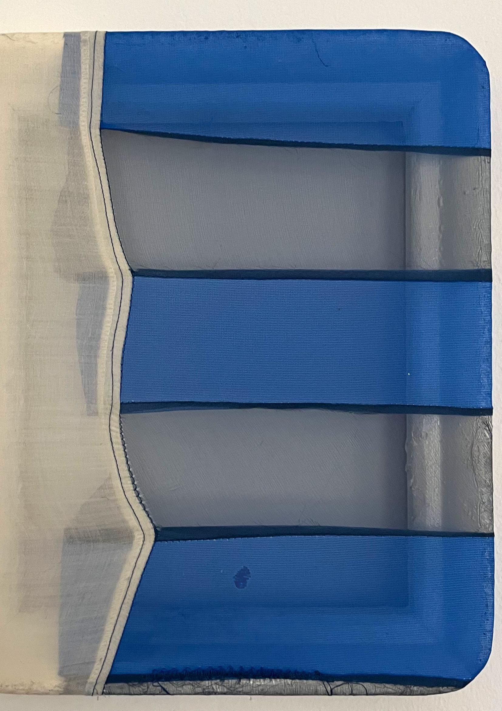 Machined and hand-stitched fabric and acrylic sealant on stretcher 20 x 24 x 3.5cm