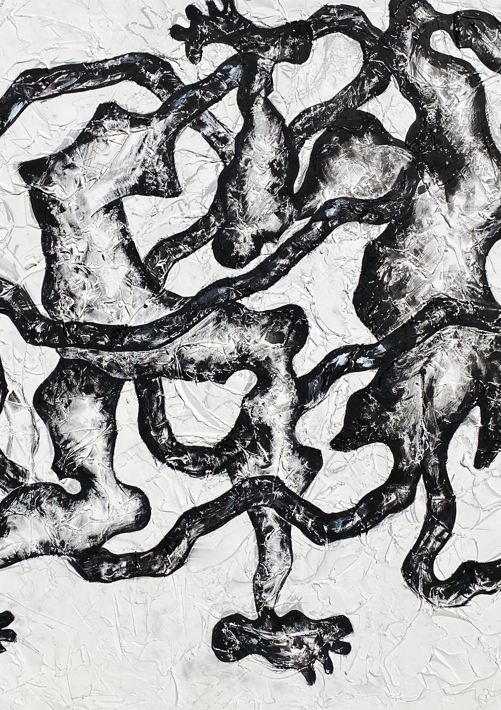 The artist does not have a description of the work as such, though she can say that the work is materially guided and mainly focuses on this.