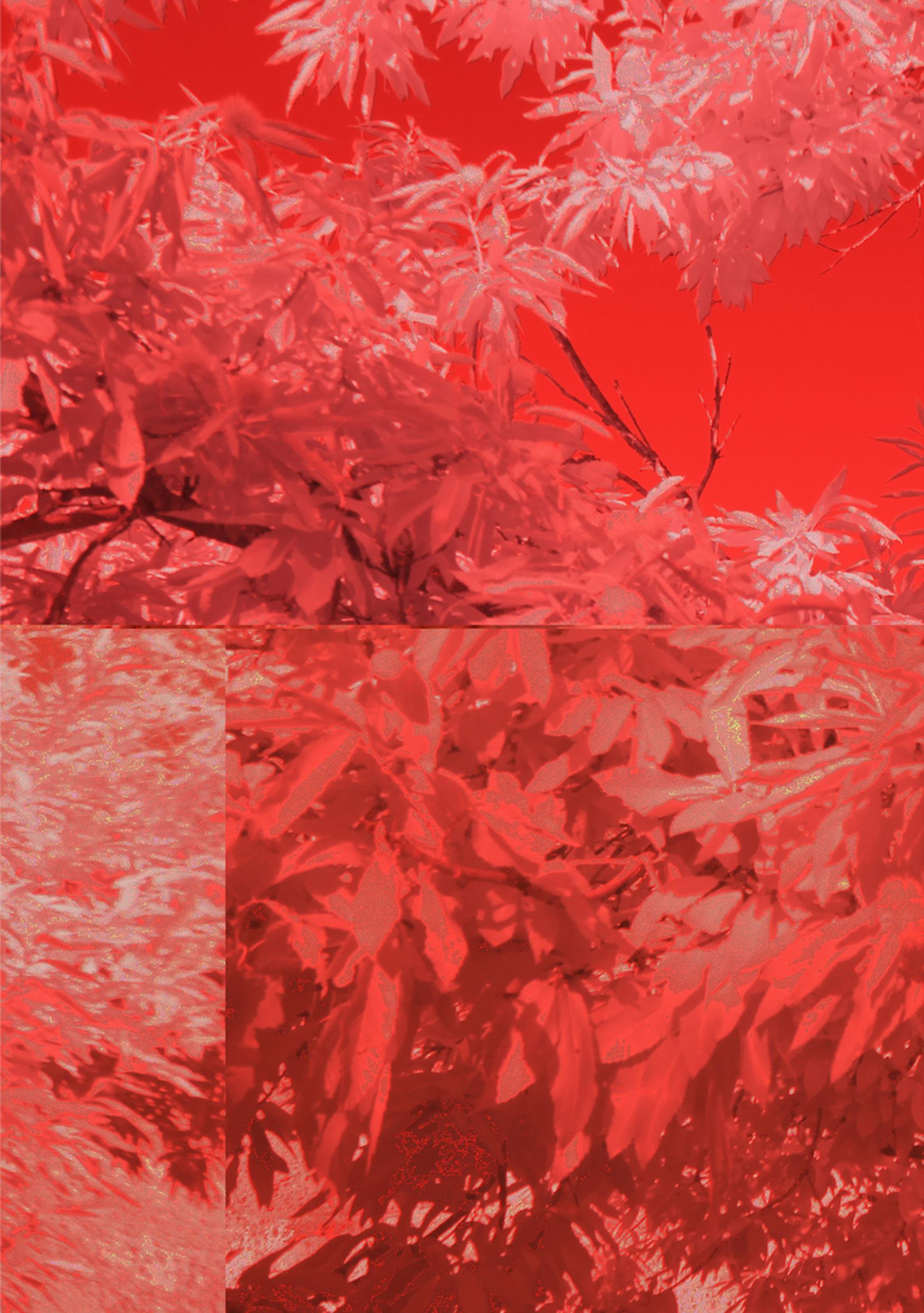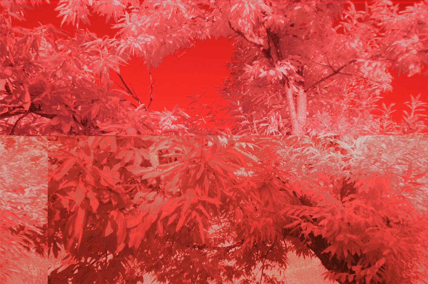 Since 2016 she has been exploring the world by photographing degraded landscapes, capturing the broken beauty of these places and their unique textures and sounds. Her photograph Galicia was taken with a modified infrared camera in the forests of Galicia, northern Spain, in summer. Later, she experimented with creating a series of ‘glitched’ landscapes. In Galicia, the photograph was altered to generate a posthuman glitched landscape with the help of sound editing software.