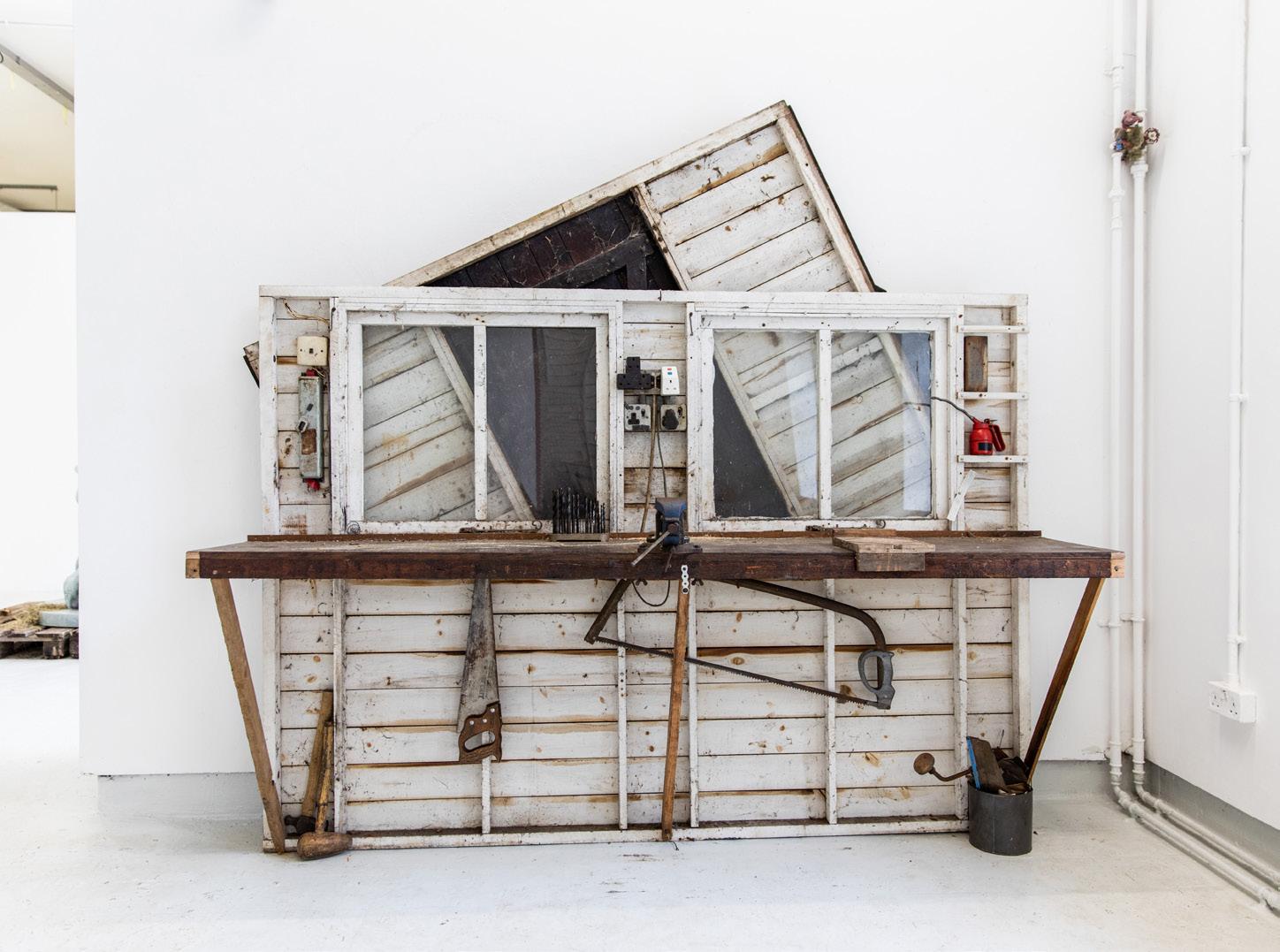 metaphor for artistic practice. Natasha Husain (BA Graphic Design) charts her family’s immigration from Pakistan to England in the 1960s and 70s, teasing out universal family dynamics within the context of an exceptional personal history. For Phillip Rhys Olney (MA Fine Art), an installation of his grandfather’s shed similarly tests the limits of space as a vessel of social, political and familial legacies. Temitope Adebowale (BA Fine Art) and Amaya Powers-Fernandez (BA Fine Art) present tender portraits of family members, each capturing a relationship more than a figure, where viewers are entrusted with a glimpse into the intimate bond between mother and child, sister and sister.