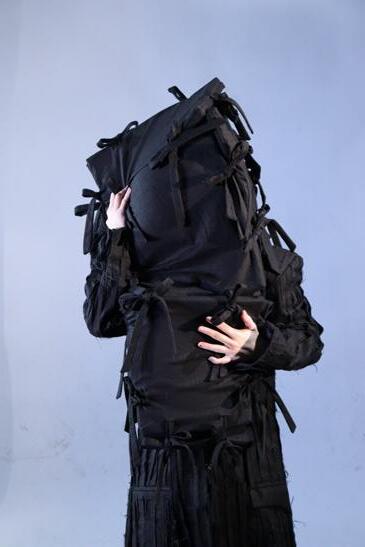 Works by Nibras Al-Salman (BA Ceramic Design), Xuanran Jo's and Min Liang (both MA Costume Design for Performance) experiment with the storytelling potential of ceramic and costume, interpreting the classic stories of Don Quixote, The Tempest and Bluebeard’s Castle. Jo’s garment reflects the character development of Prospera but also encourages the wearer to move rhythmically, creating a kinetic manifestation of Shakespeare’s iambic pentameter. Similarly blurring spatial and linguistic poetry, in Ciana Taylor’s (BA Fine Art) video work, a spoken poem slowly unravels the imagery – and vice versa – taking