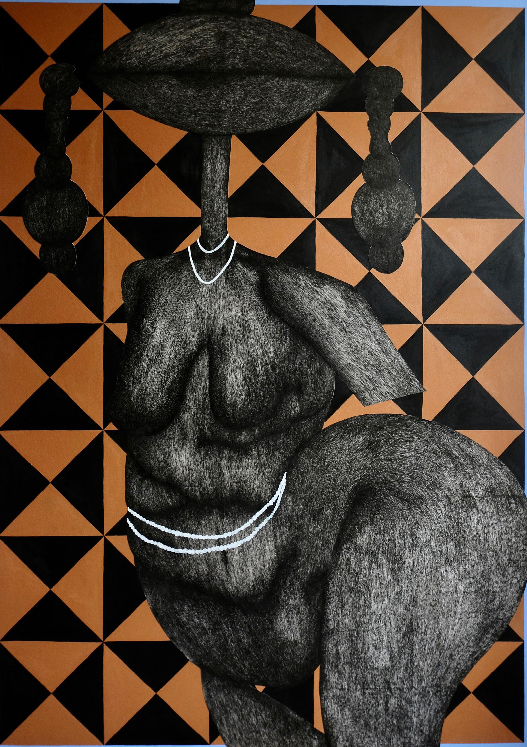 Hybrid is a non-human entity that explores the representation of the Black female image through the iconographic significance of the Black female body in both Western and African cultures. The work exhumes physical and psychological trauma by questioning the multiple layers of Black women’s identity through the prism of assimilation. Hybrid is an exaggeration of stereotypes as a way of demystification, flying over cultures, traditions and modernism.