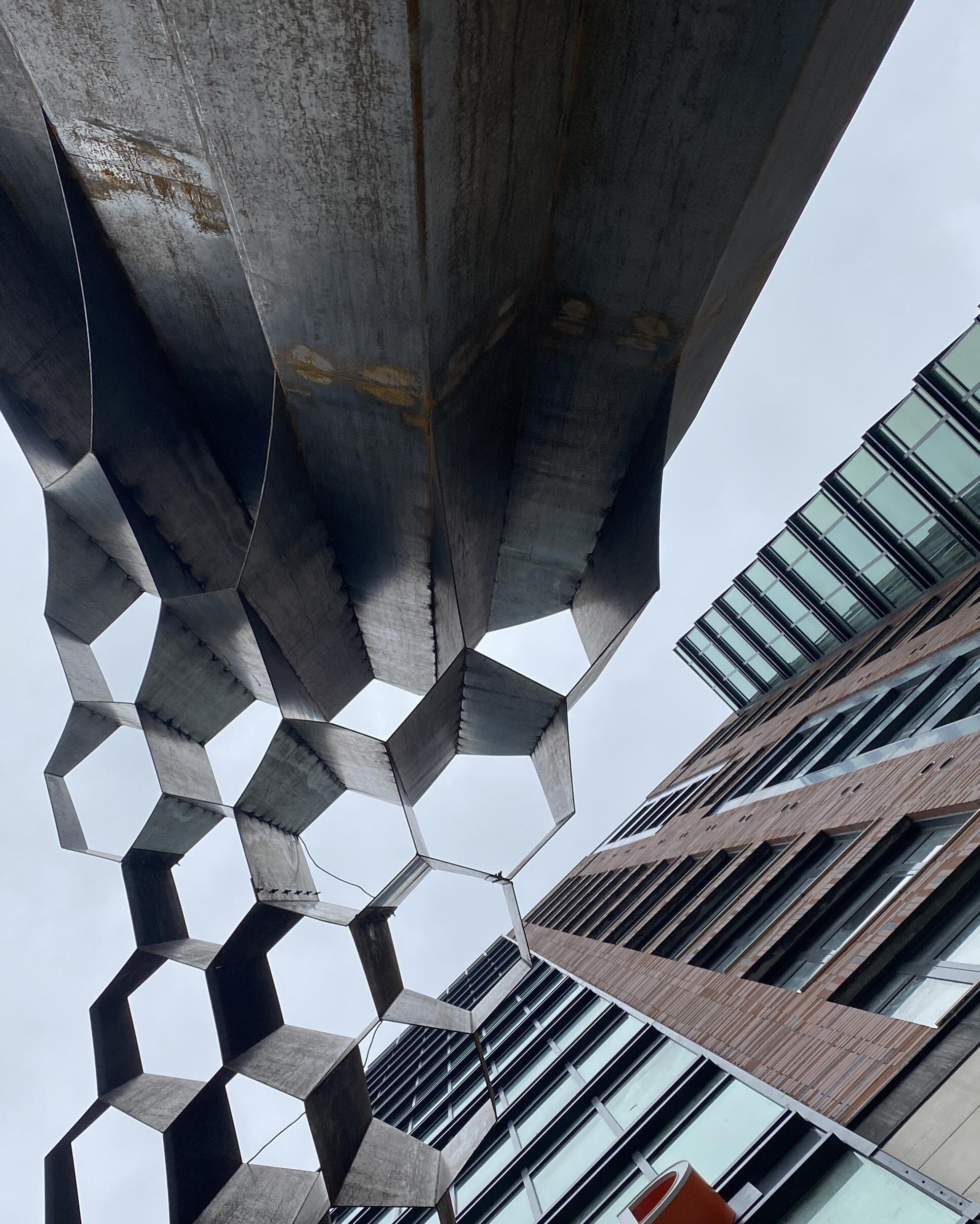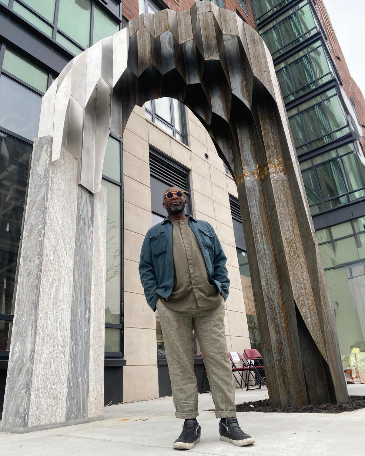 Otitigbe worked with the architect Michael DiCarlo to design "Peaceful Journey." The archway offers an invitation for people to pass through its portal, which serves as a waymarker for a peaceful journey — whether for those leaving the building or community, or for those returning home.