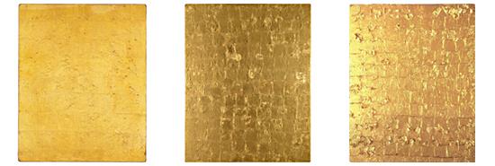 They owe their fascination to Macri’s subtle and yet dramatic use of jewelry and gold, whether actual or suggested. Macri is a careful artist: he takes exceptional and delicate care in his choice of materials, understanding their provenance, effect and purpose in his compositions, just as the absence of glittering gold and jewels in Corpus Callosum points to their importance and the skill of the artist. Gold has ever been of use to creators, from gilding sculptures to decorating mediaeval manuscripts and layering gold leaf in religious painting. Everyone is familiar with Gustav’s Klimt’s application of gold in various paintings, especially during his so-called Golden Phase when he produced dazzling portraits like Pallas Athene, and Portrait of Adele Bloch-Bauer I. More recently, among works by other artists, we have Yves Klein’s Untitled Monogold canvases, or his Gold Leaf on Panel.