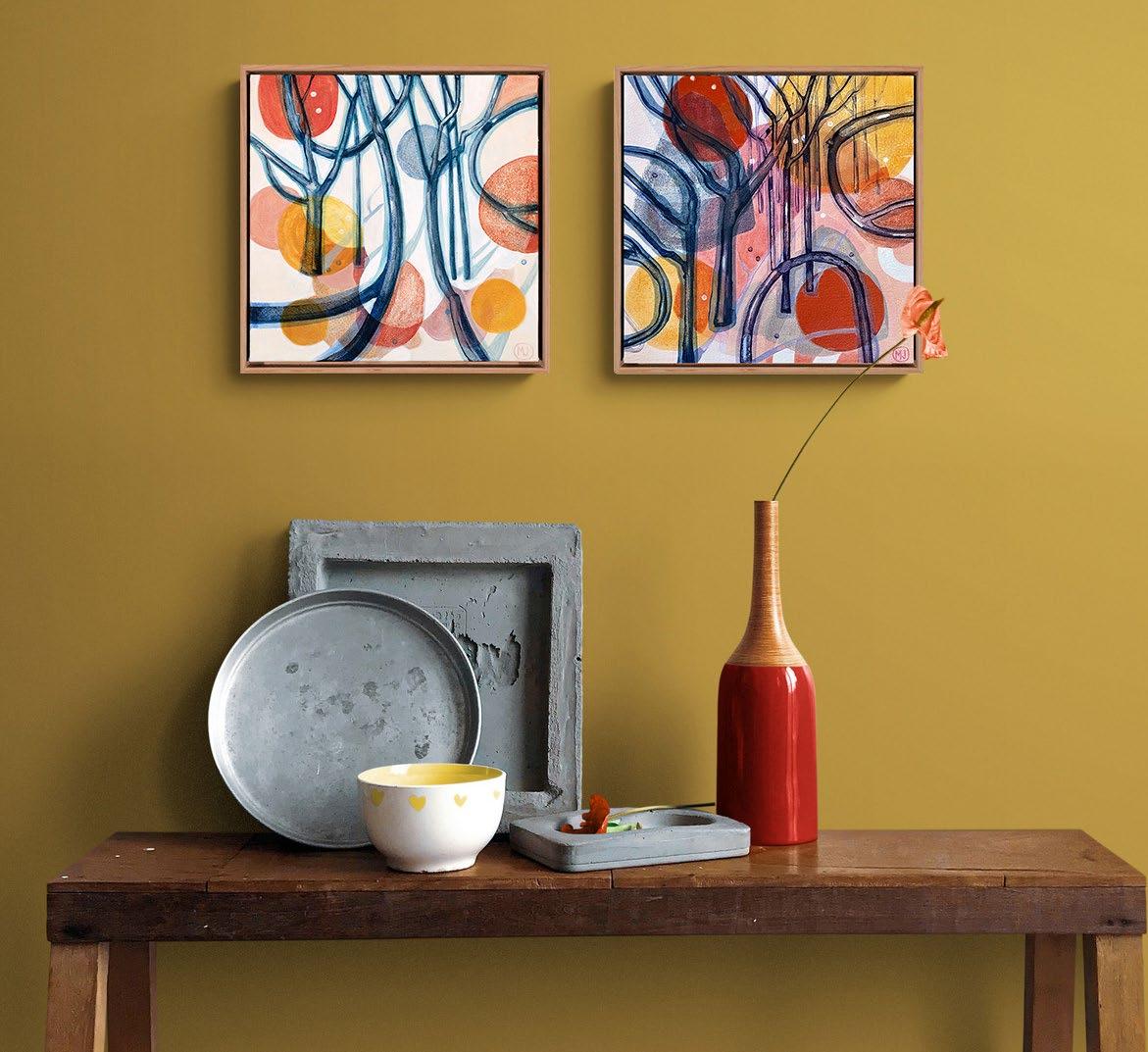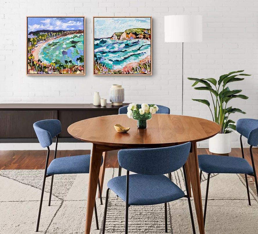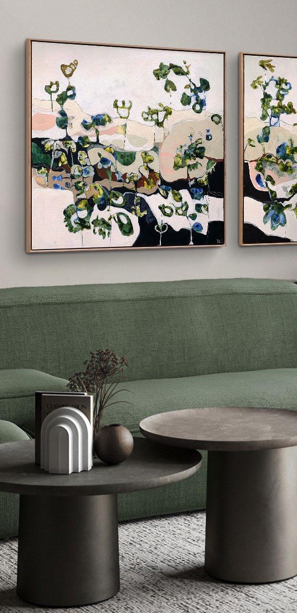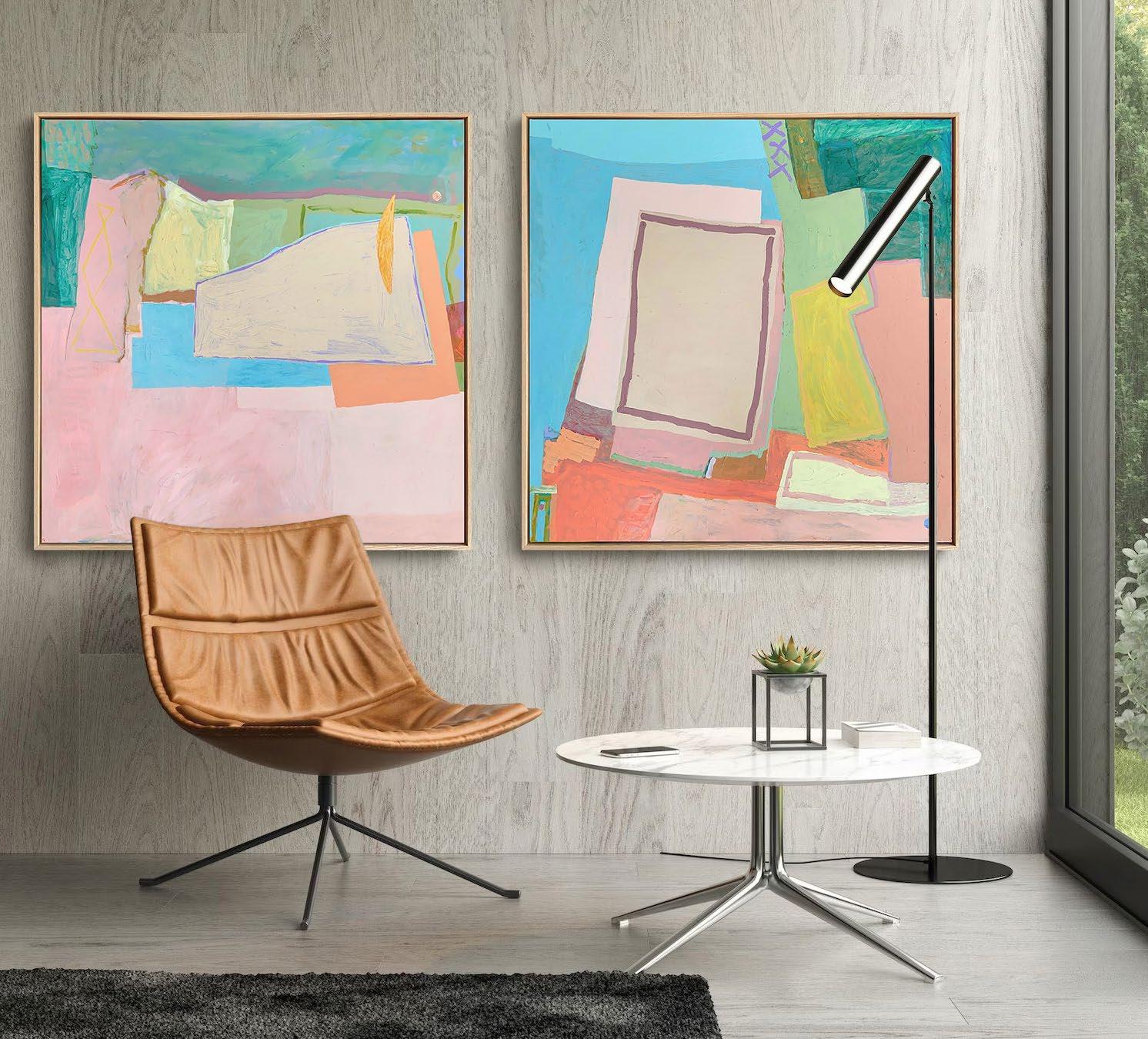Acrylic on canvas, framed in raw oak. 104 x 104 cm $2,800 each or the pair for $5,200 Saving of $400