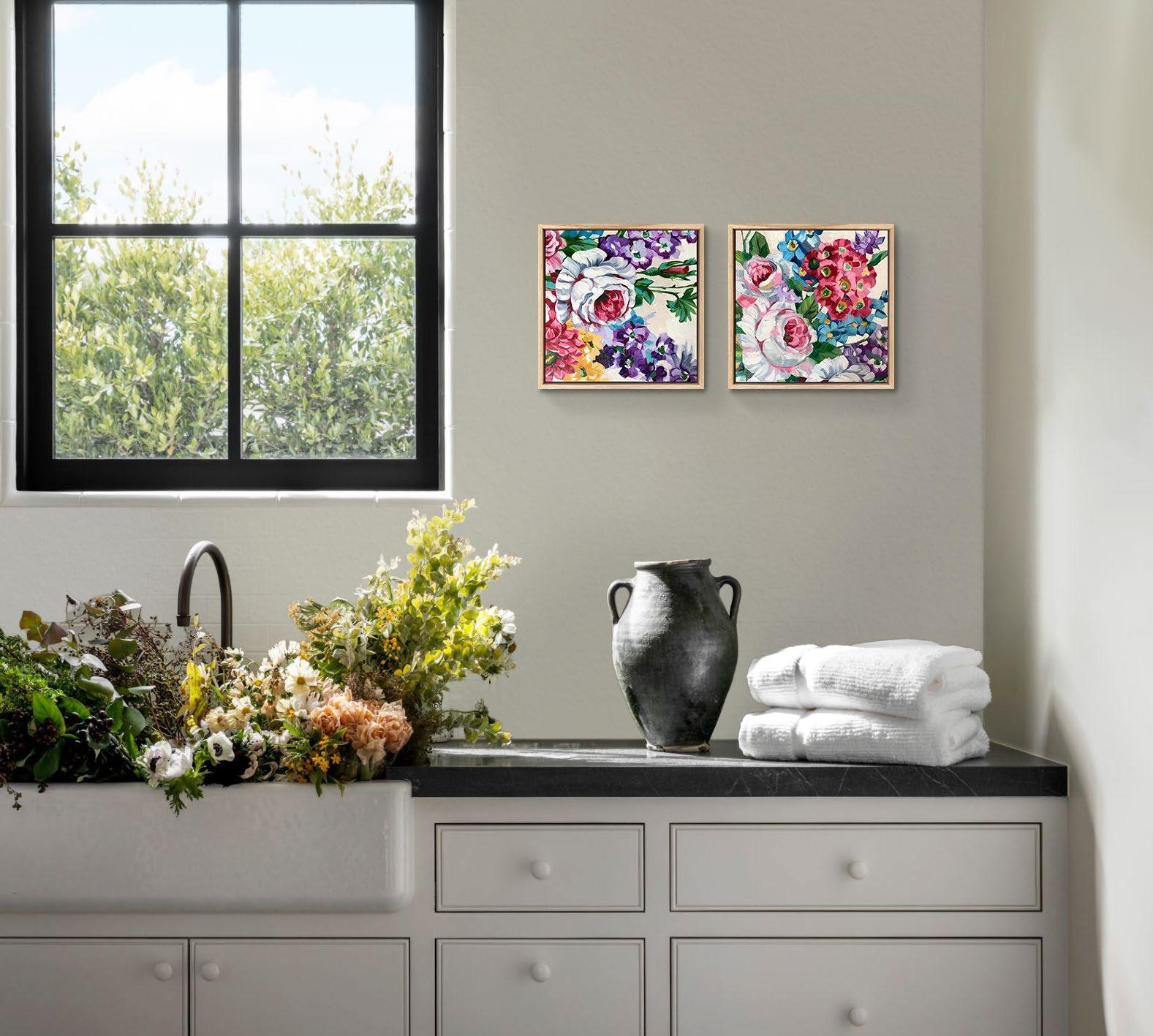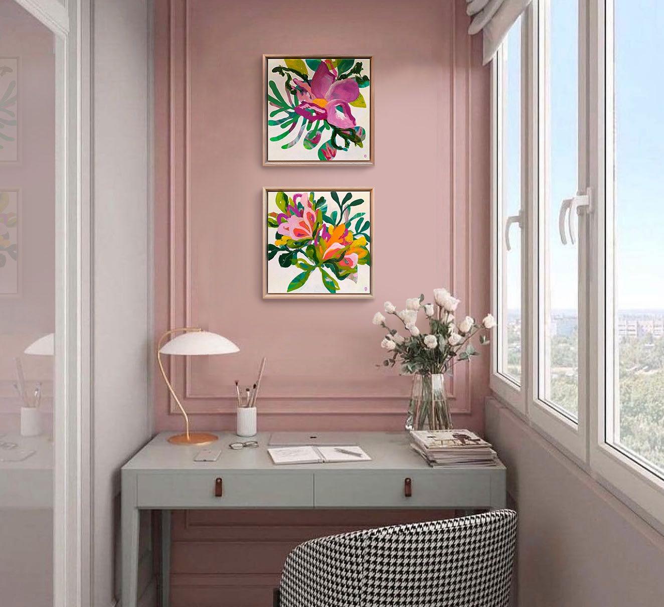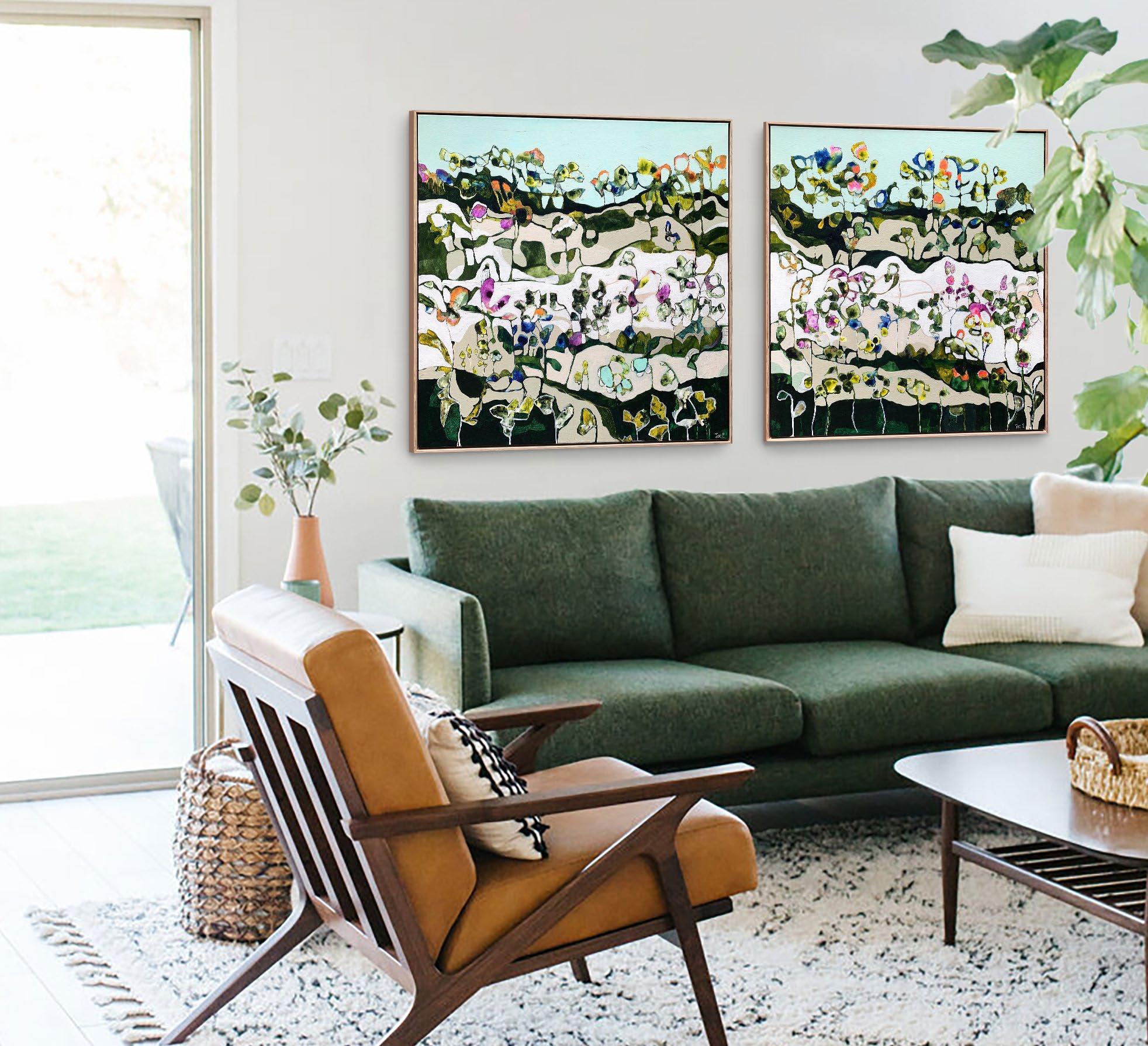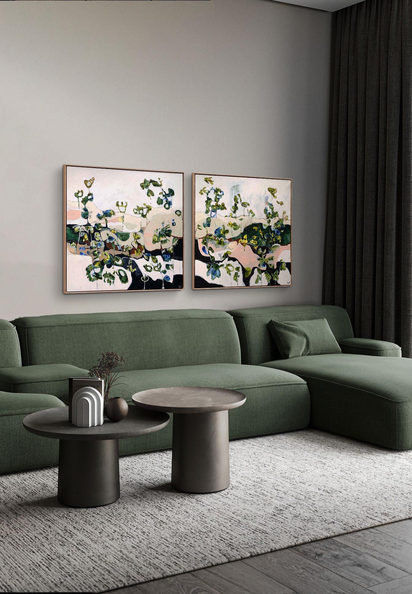 Acrylic on canvas, framed in raw oak. 104 x 104 cm $2,800 each or the pair for $5,200 Saving of $400
