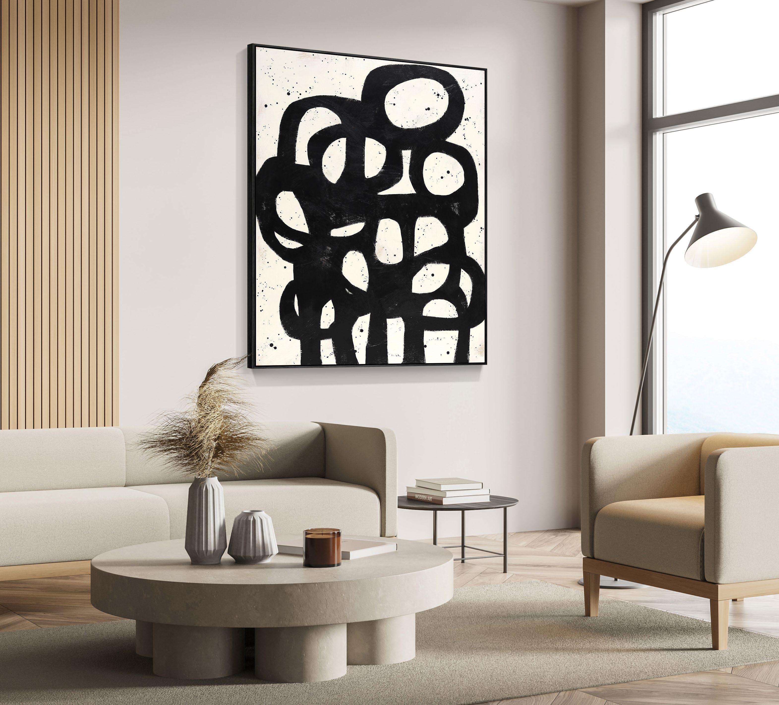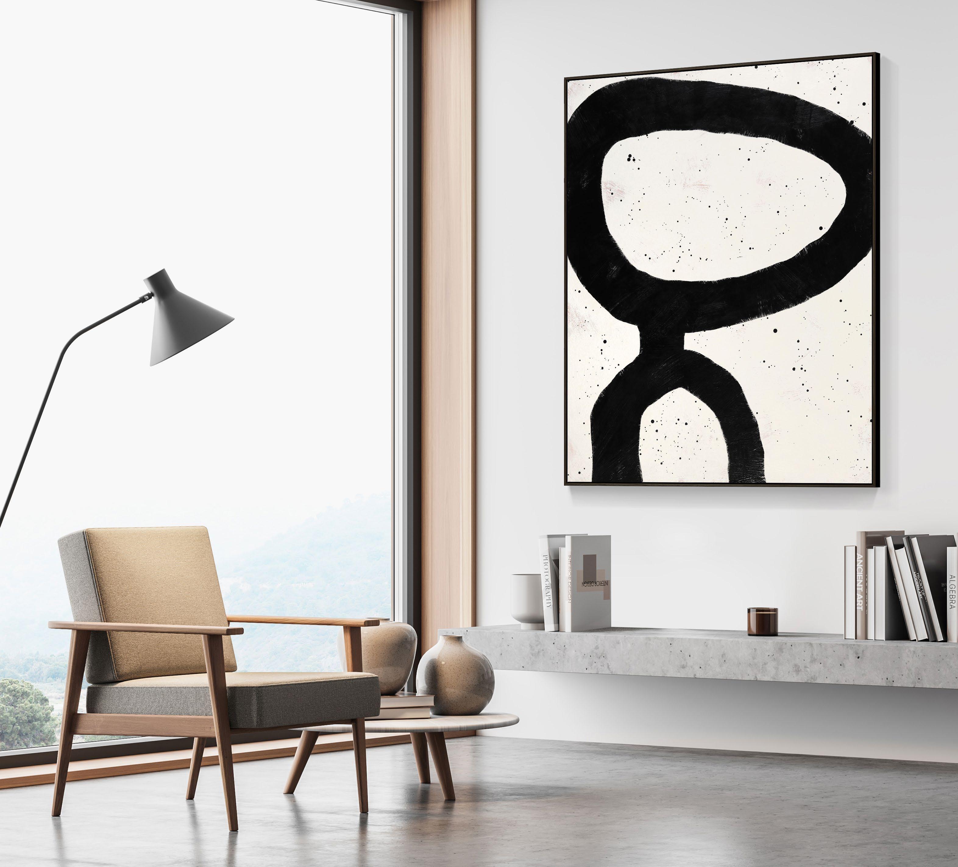 Acrylic on canvas, framed in raw pine / black-painted pine
