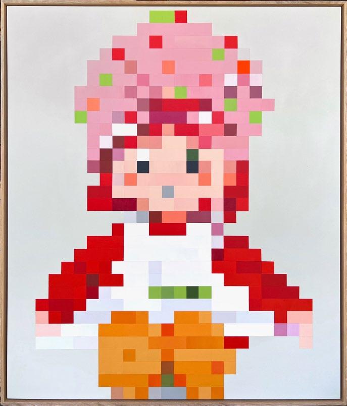 Acrylic, aerosol and collage on canvas, framed in raw oak. 43 x 43 cm $720
