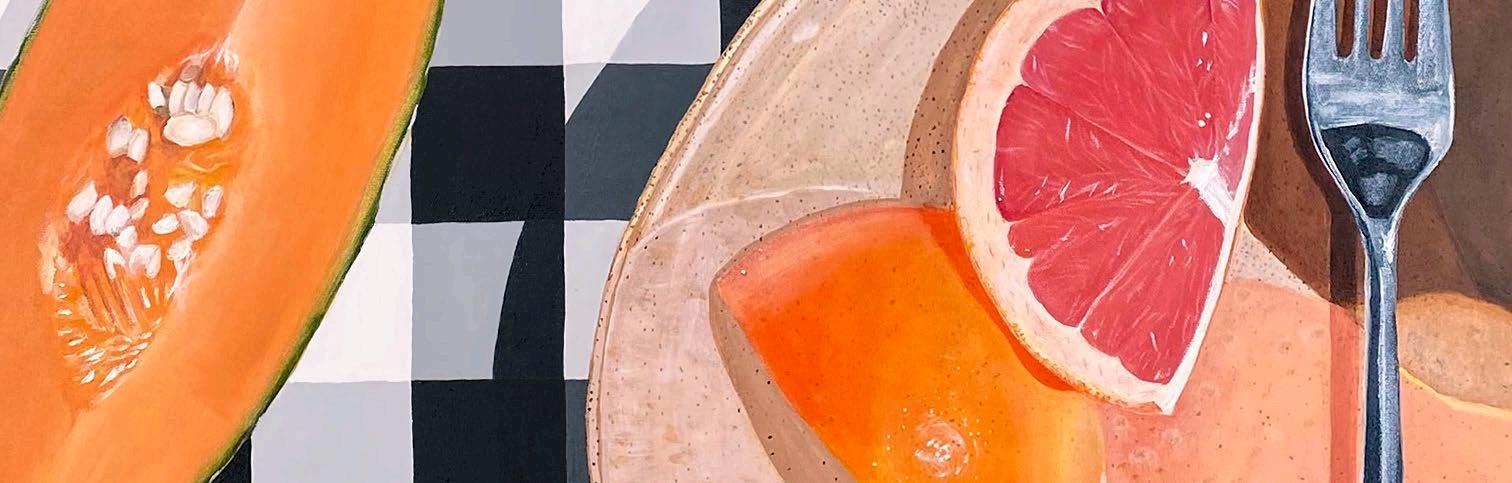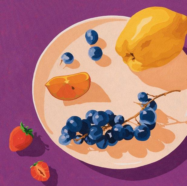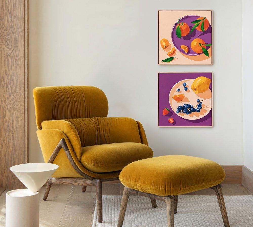 'Mandarines on Vanilla Cream' and 'Quince, Citrus and Seeds on Vibrant Purple'