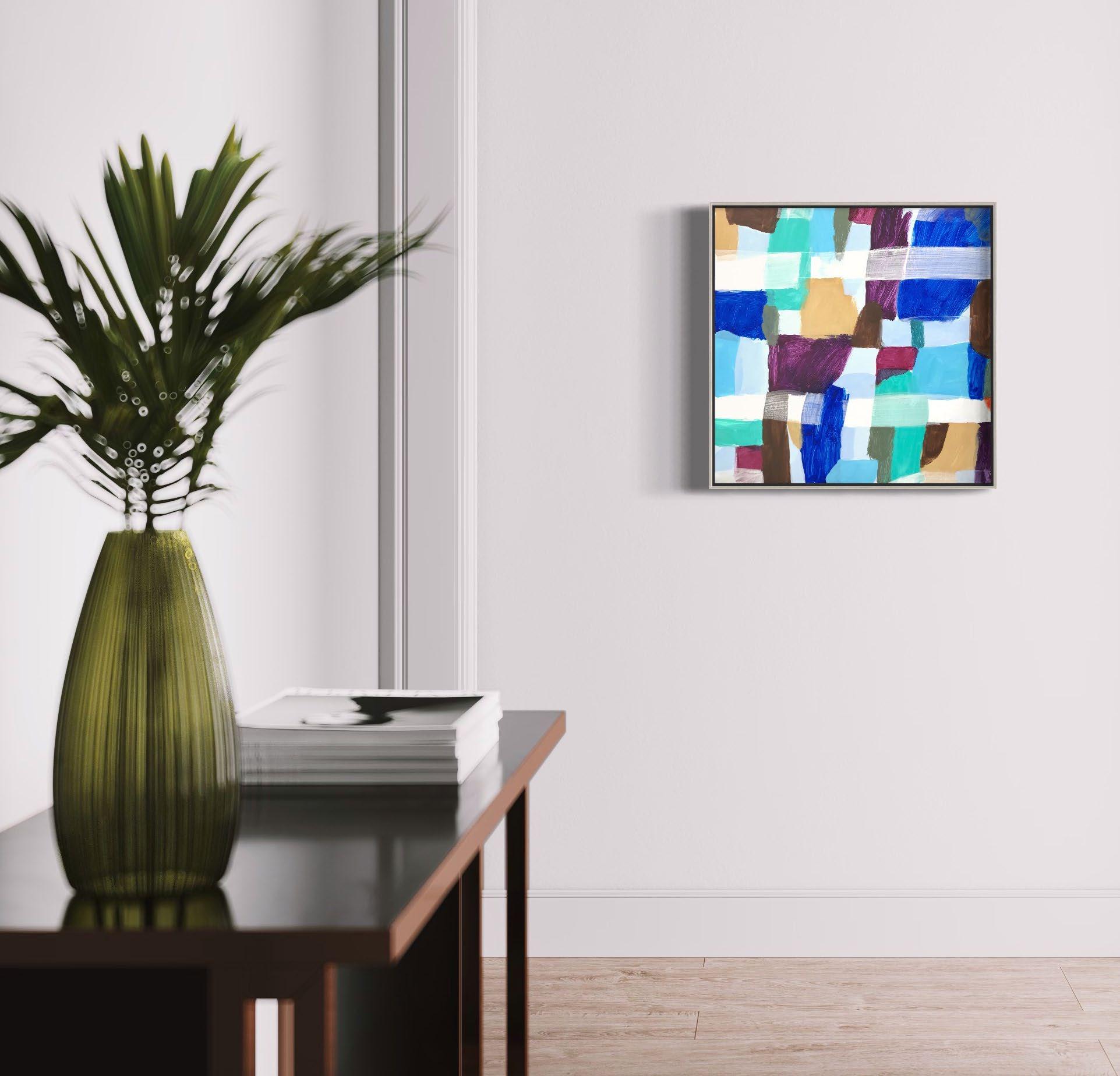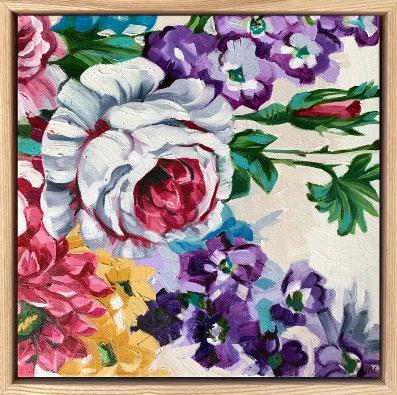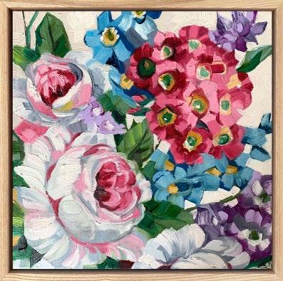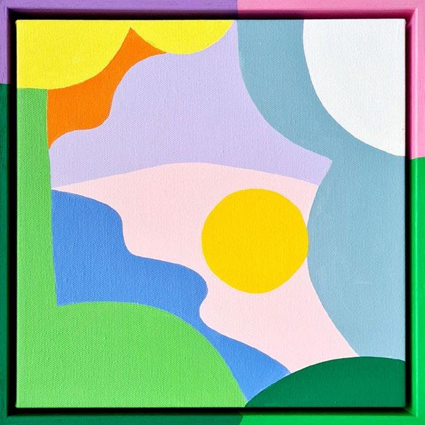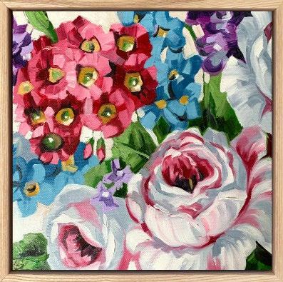 Acrylic on canvas, box framed in painted frame. 33 x 33 cm $650 each