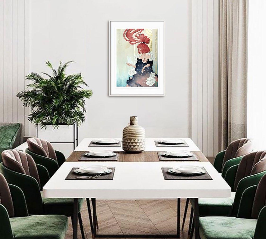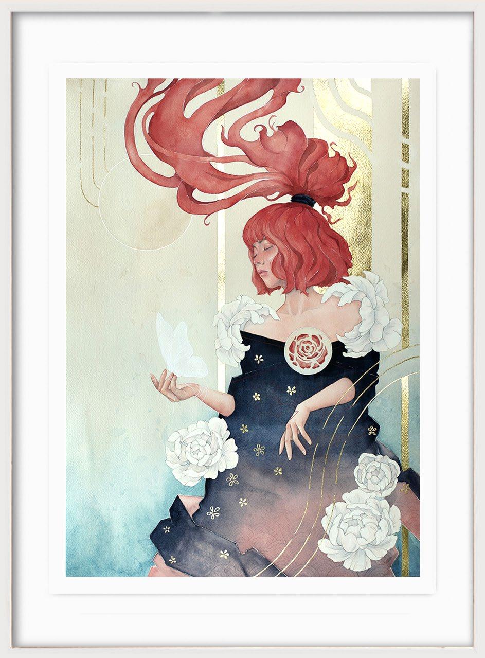 This painting tells the story of igniting ones heart and soul again. As the moon echoes the rhythm of time, our old memories fade and lose their colour and that is when we must find a path to a new beginning.