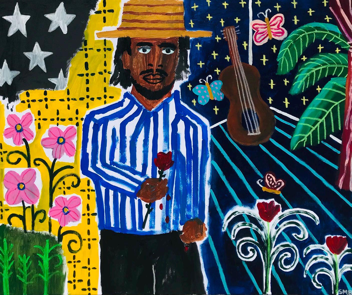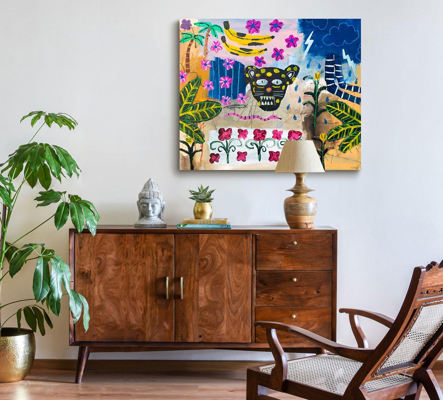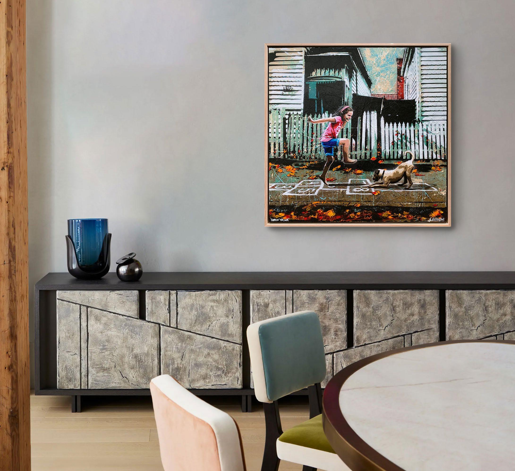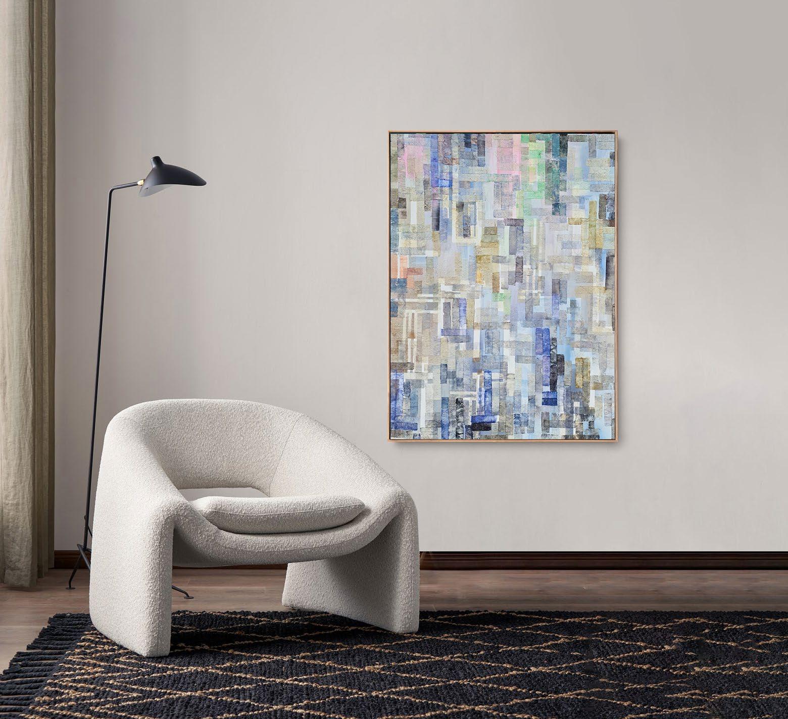 All acrylic and mixed media, framed in raw.