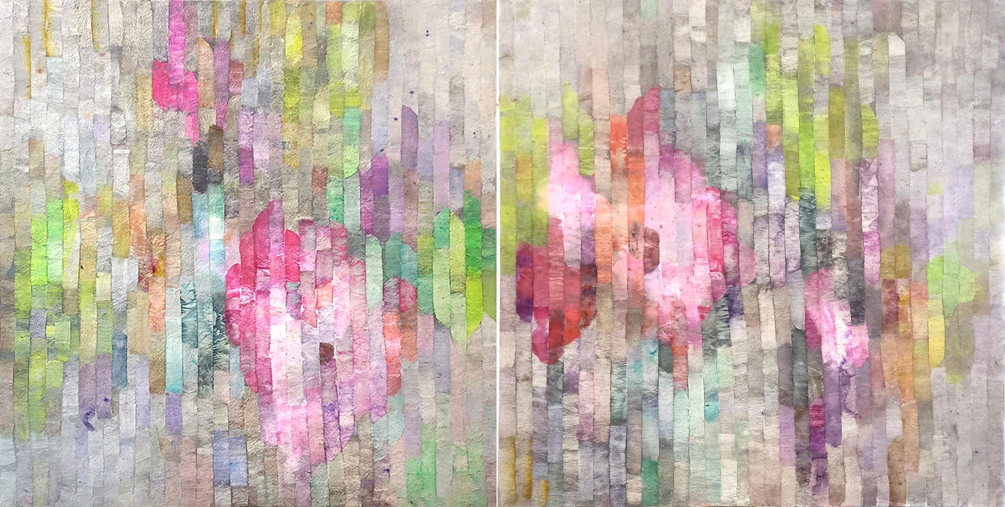 Hand dyed silk on painted canvas. Diptych 180 x 90 cm. Sold as a pair. $4,200