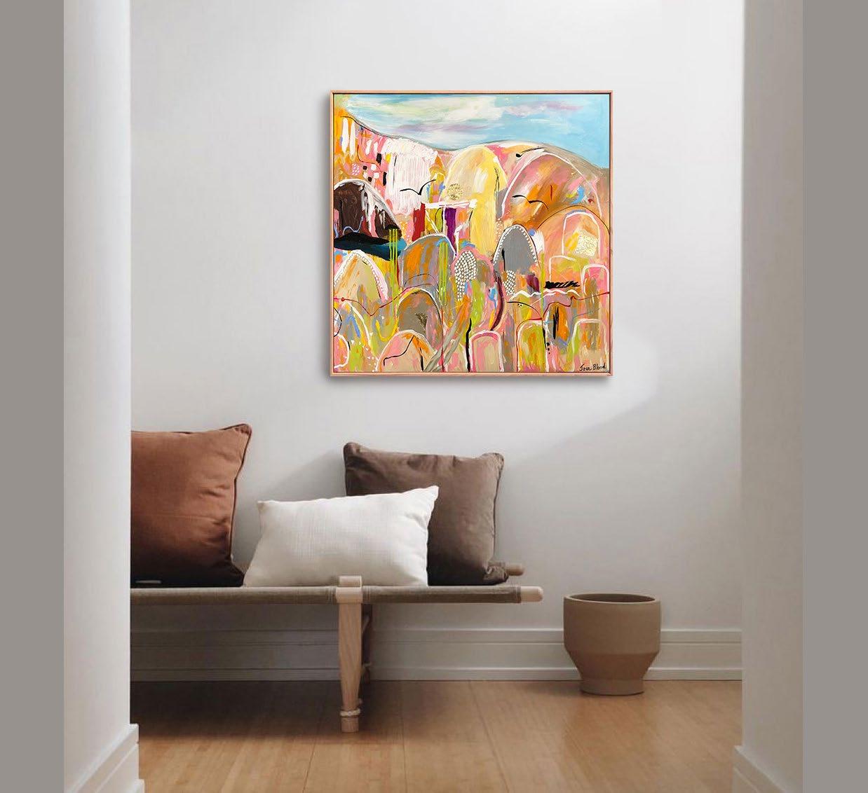 'Over the Rainbow'Acrylic on linen, framed in raw oak. 113 x 133 cm