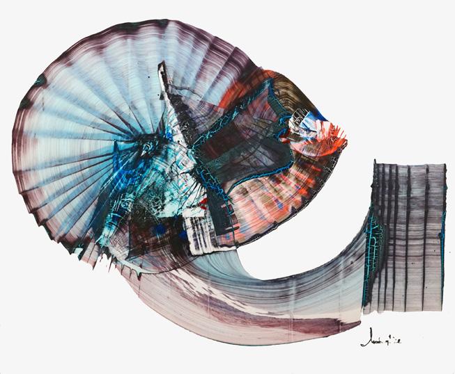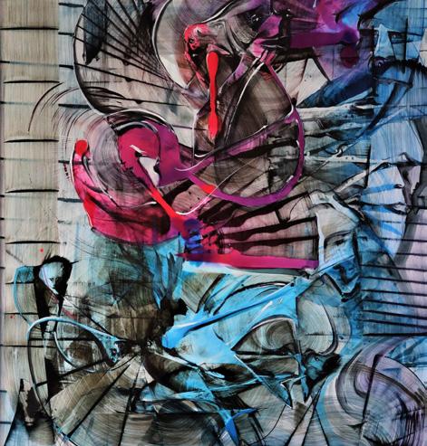 Rivas' work, a complex fusion of mixed media, invites viewers into an experiential journey, one that challenges the traditional interaction between observer and painting. His large-scale compositions seem to pulse with life, beckoning audiences not merely to observe but to move through the space his works create, to become an active participant in the storytelling woven into every intricate detail. The fluid movement of lines, the interplay of geometric precision, and organic chaos create an almost architectural framework that bridges reality and abstraction. His work elevates form, color, and texture, combining them in a way that stirs the imagination and heightens the senses.