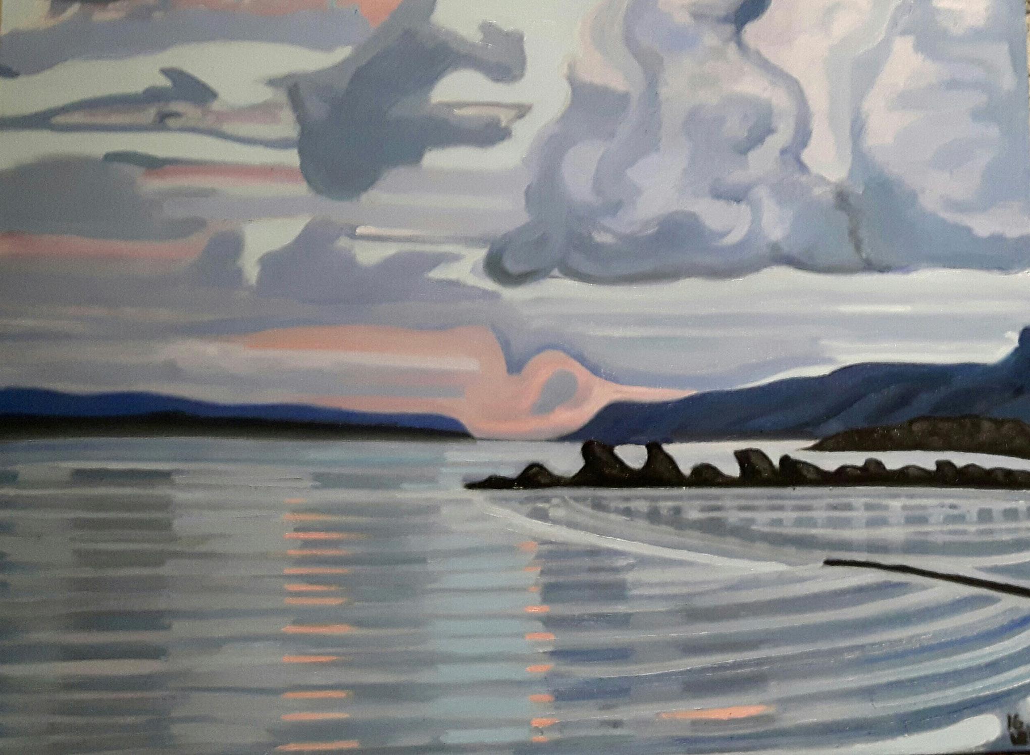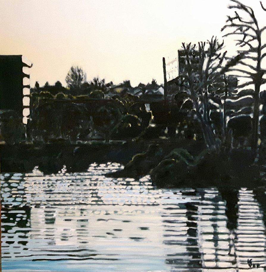 Her art practice focuses on the relationship of colors, shapes, lines, and form with realistic components communicated in a painterly language.
