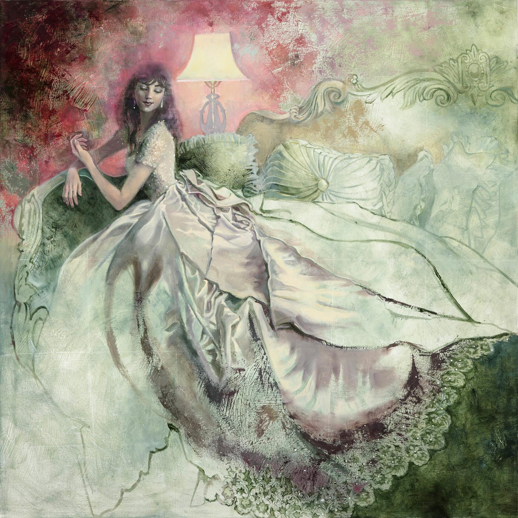 Her works present a world of glamour in a style that combines her love for fashion and painting, blending classical, realistic figurative techniques with a modern fashion-inspired impressionist influence.