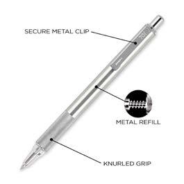 The heavy-duty stainless-steel barrel with a knurled grip ensures superior writing stability. Rugged and sturdy, this stainless steel ballpoint pen can take a beating and is designed for the serious communicator looking to embody their personal style in their writing instrument.