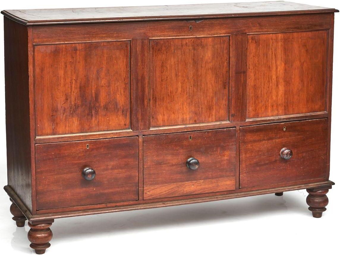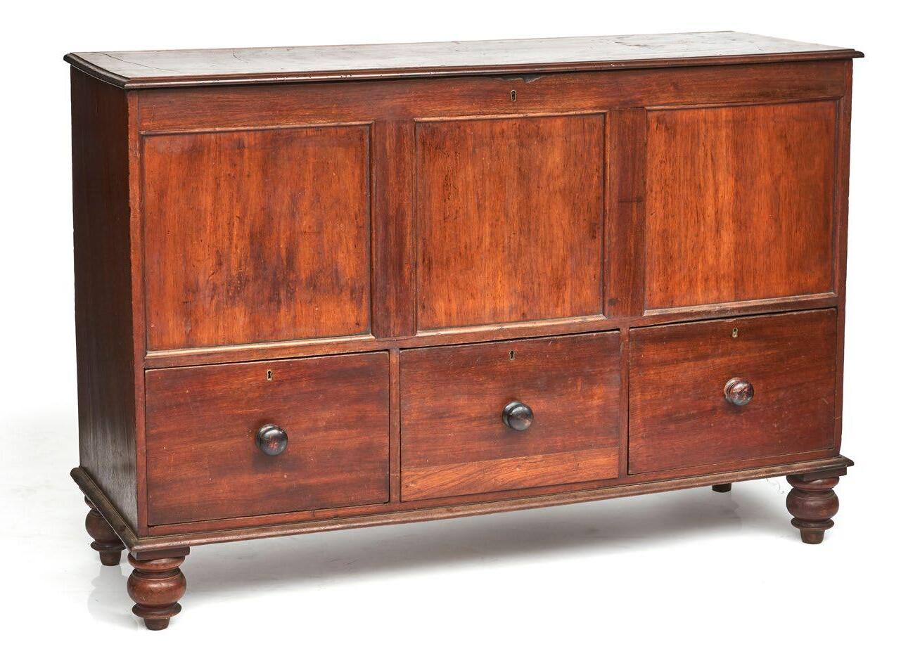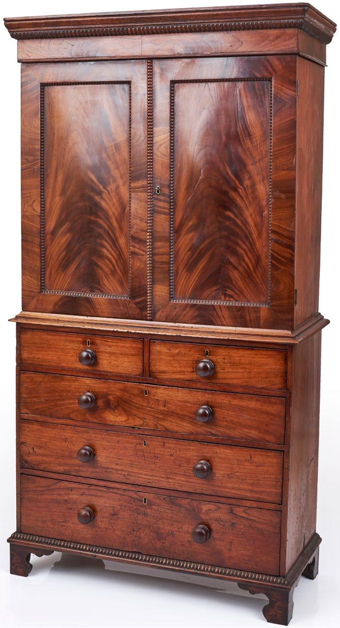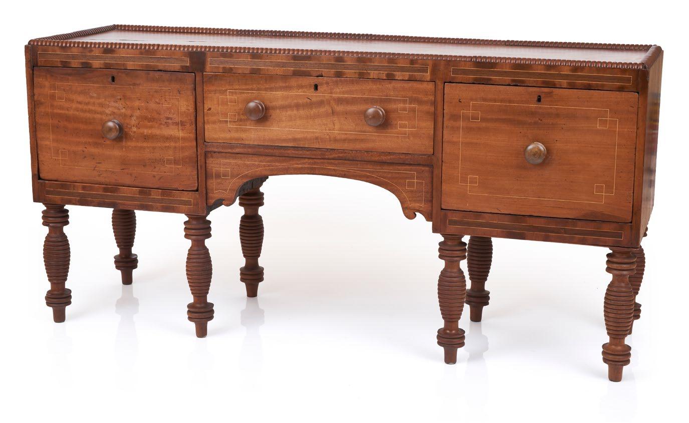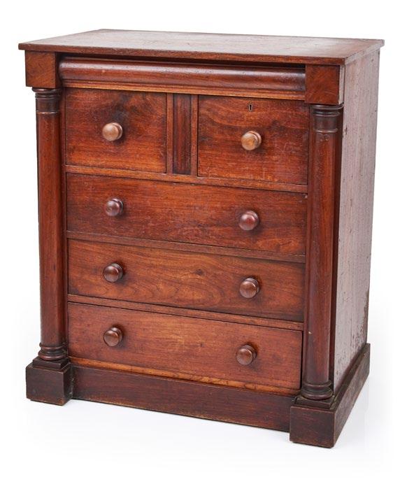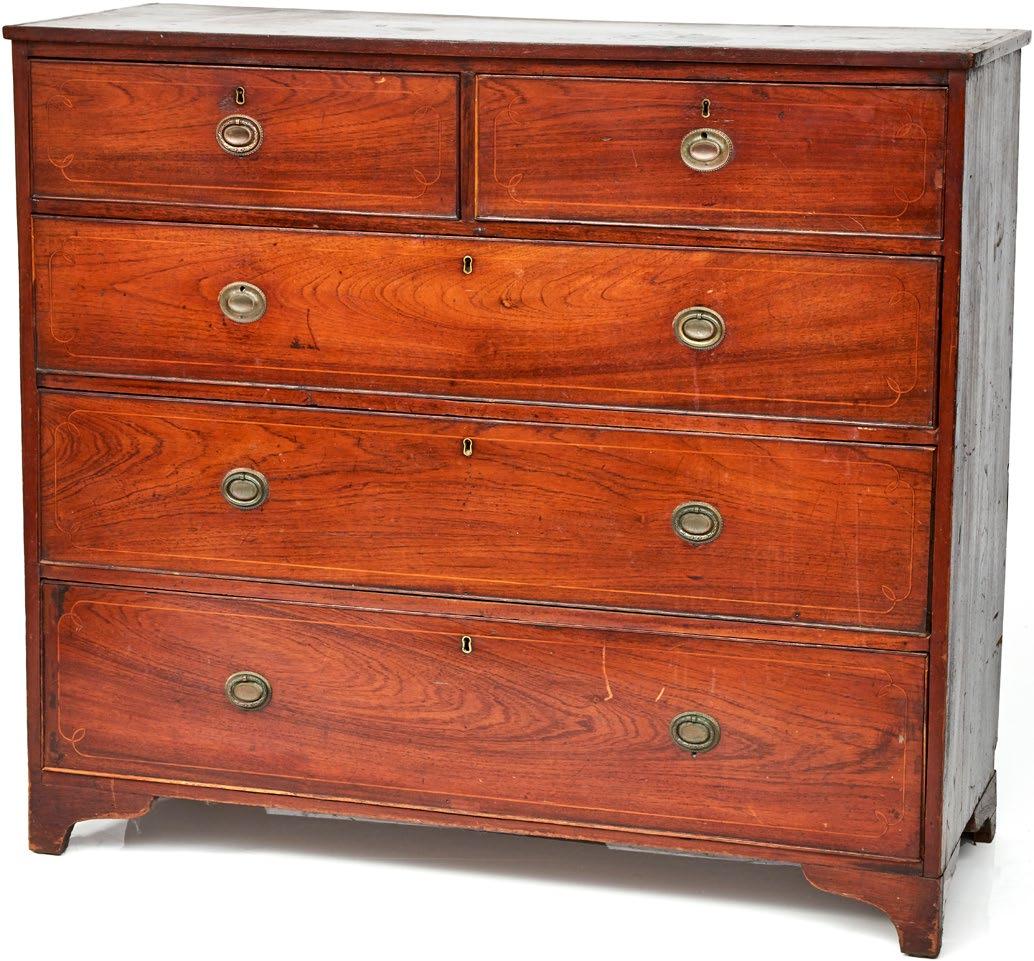 A rare and early string inlaid cedar straight front chest-of-drawers, Australian, circa 1825 119cm wide, 47cm deep, 116cm high $3,000–5,000