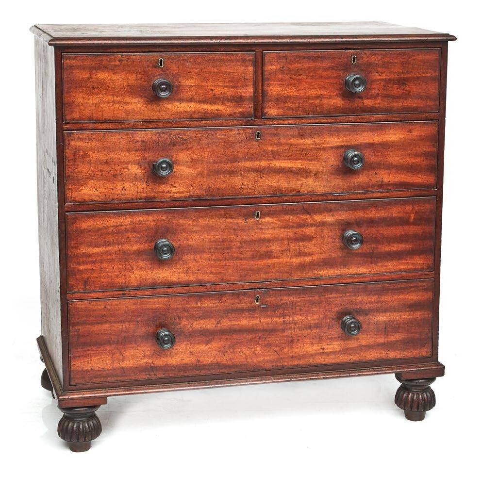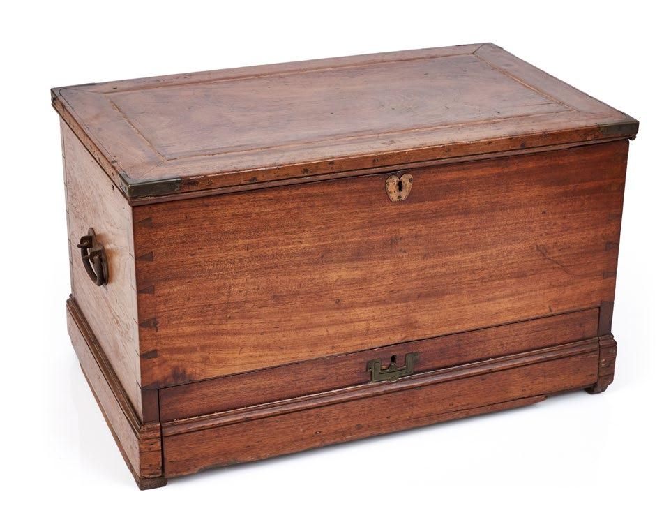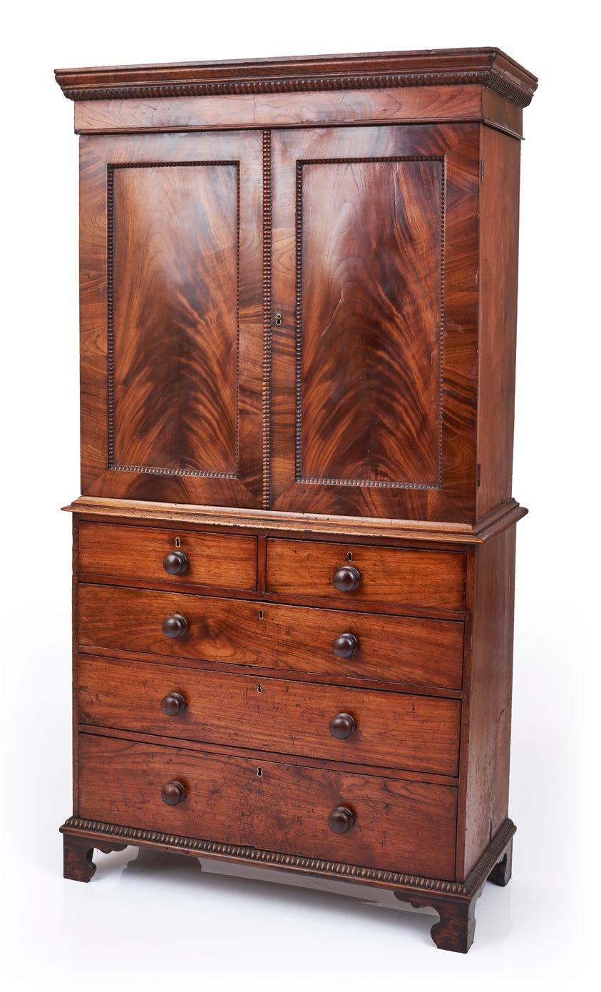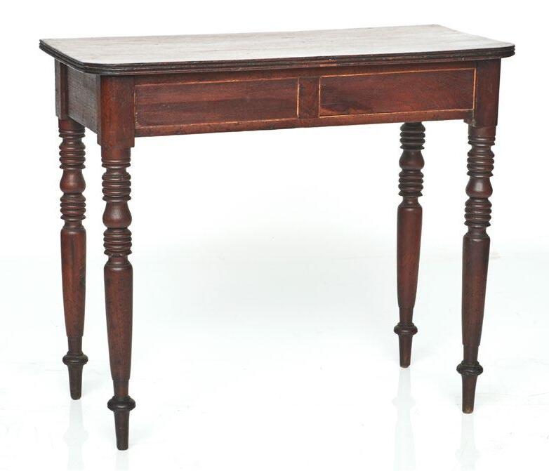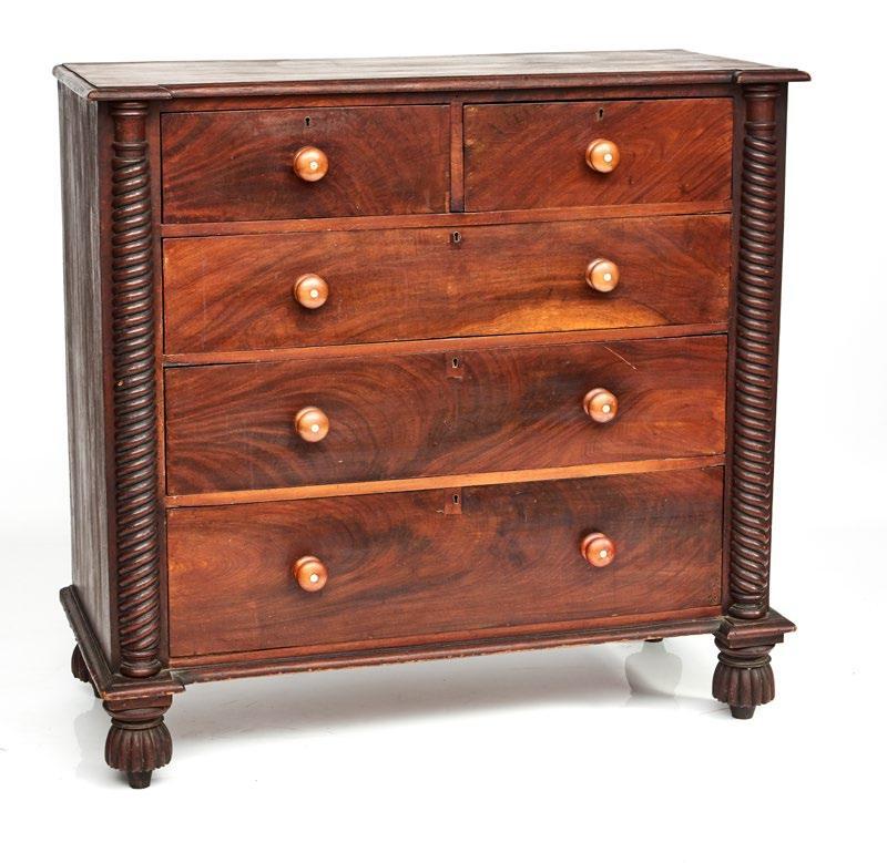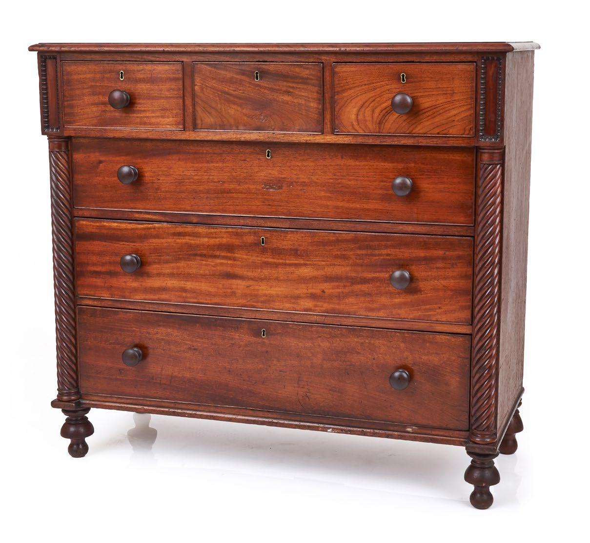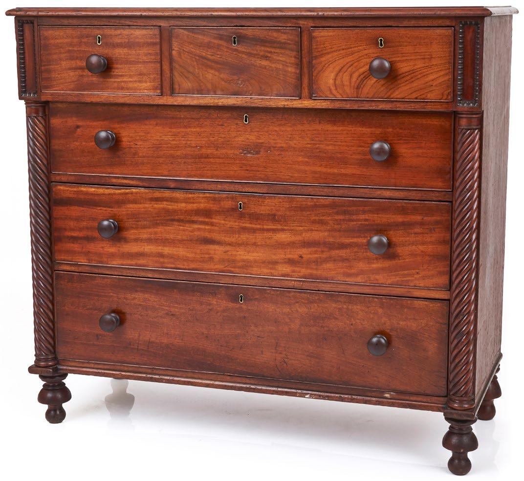A rare and early string inlaid cedar straight front chest-of-drawers, Australian, circa 1825 119cm wide, 47cm deep, 116cm high $3,000–5,000