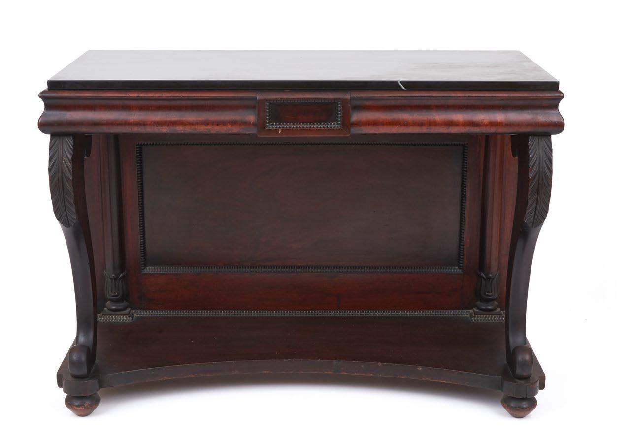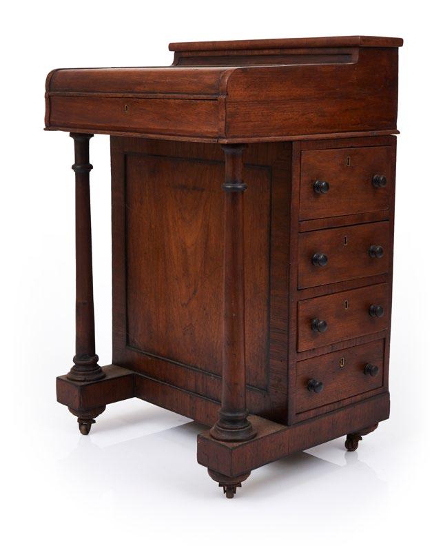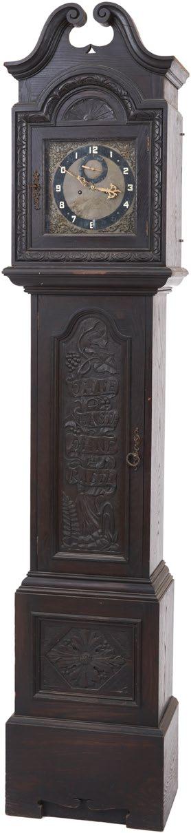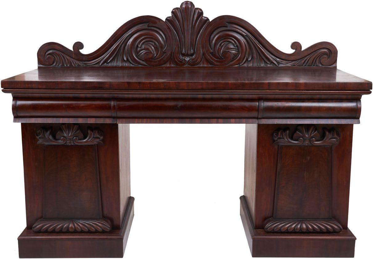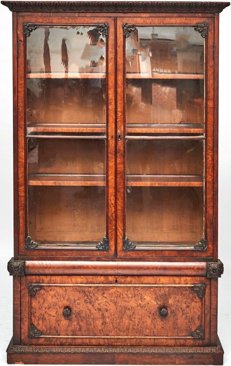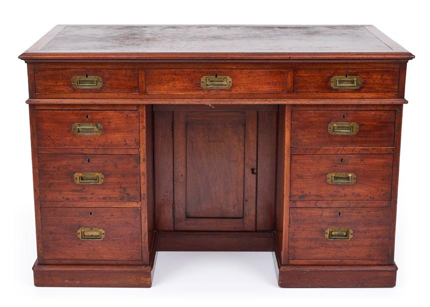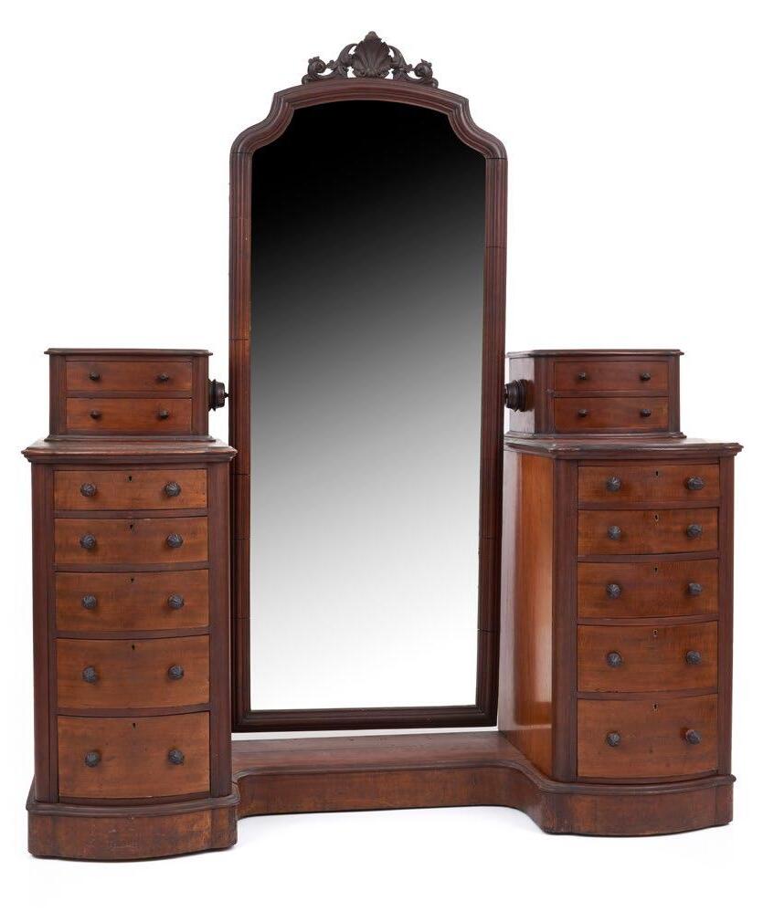 For a pediment carving of almost identical form, refer to the ‘Wallalong Bookcase’ by Hill and Sons illustrated in Australian Furniture Pictorial History and Dictionary 1788-1938, Kevin Fahy and Andrew Simpson, Casuarina Press, Sydney, page 184. It therefore could be suggested that this wardrobe was commissioned for Dr Walter Scott of Wallalong NSW. $2,500–4,000