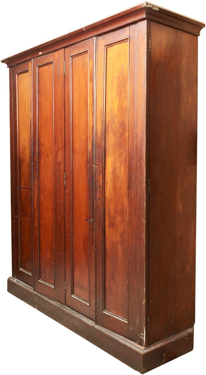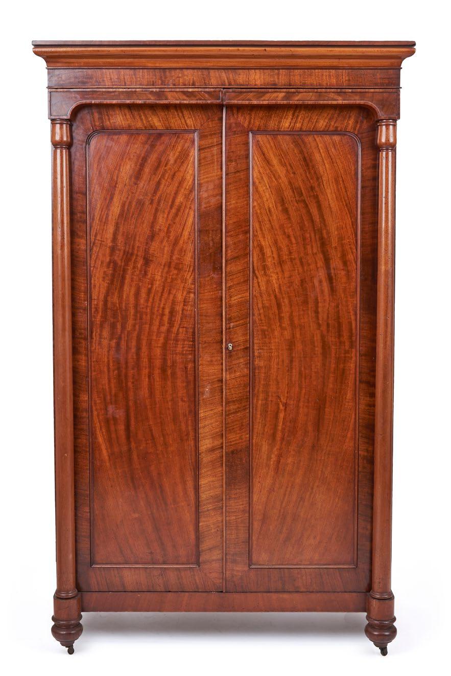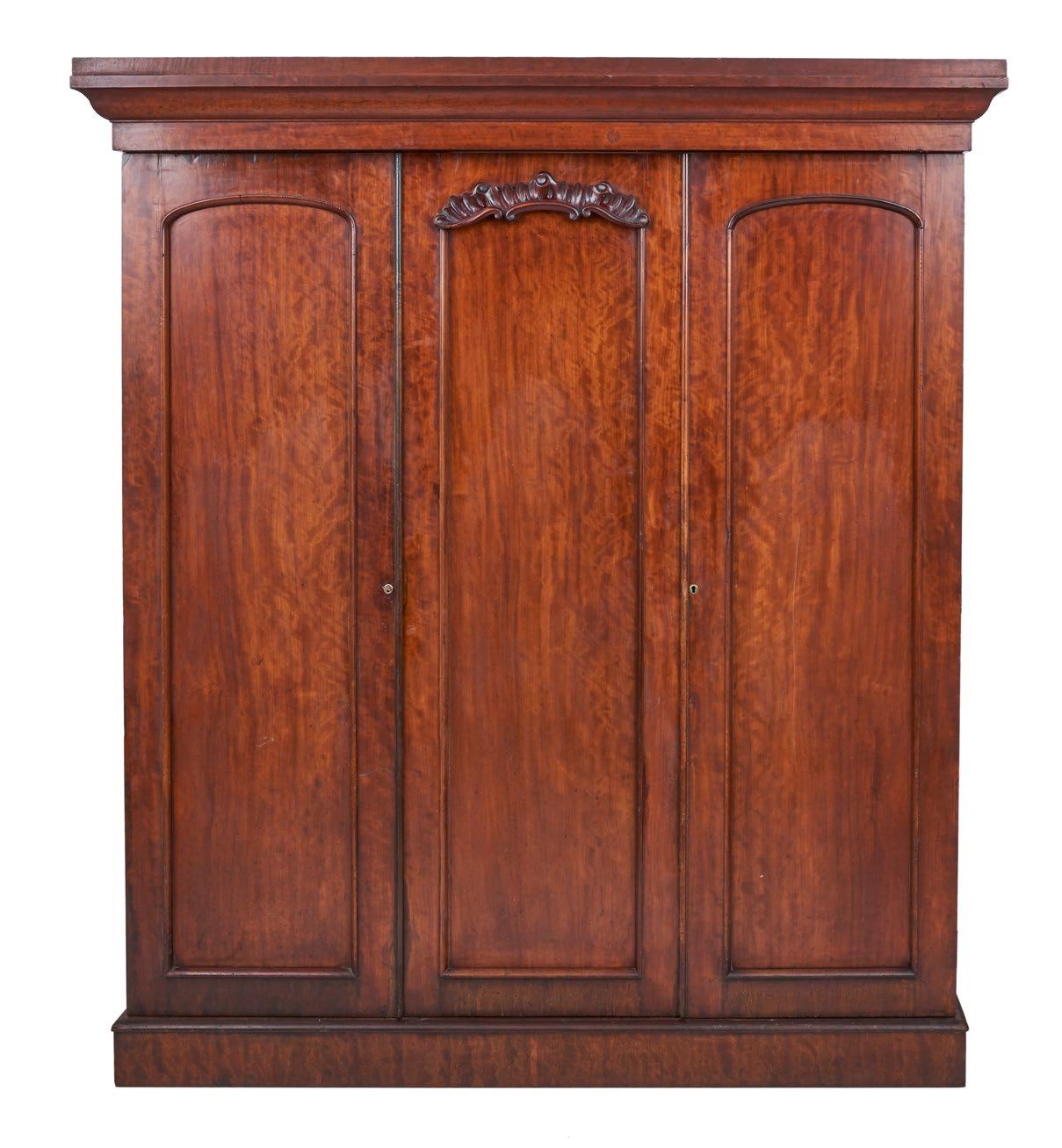 A good quality and very impressive cedar three-door wardrobe, Australian, circa 1850 with tall carved flat pilasters 190cm wide, 230cm high $4,000–6,000