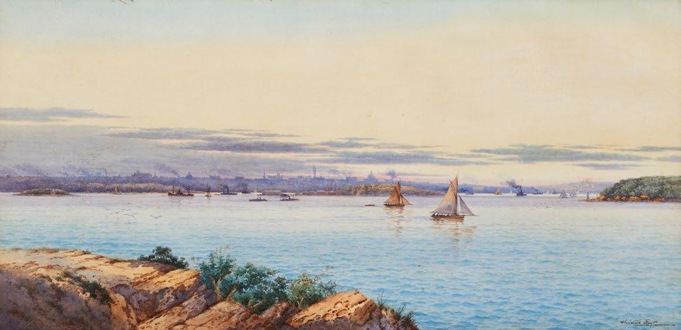 Sydney harbour from the north shore watercolour signed lower right