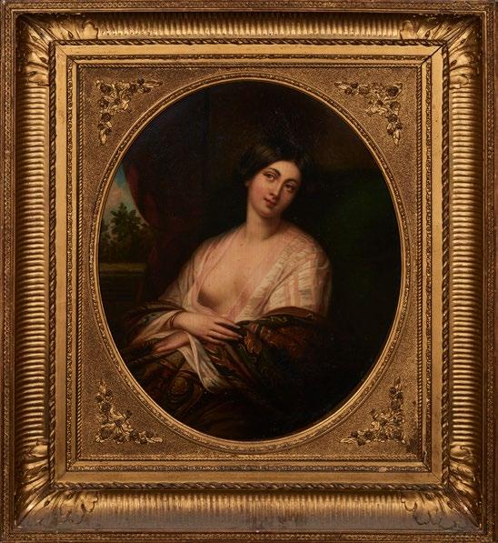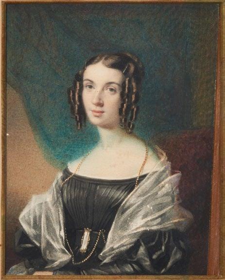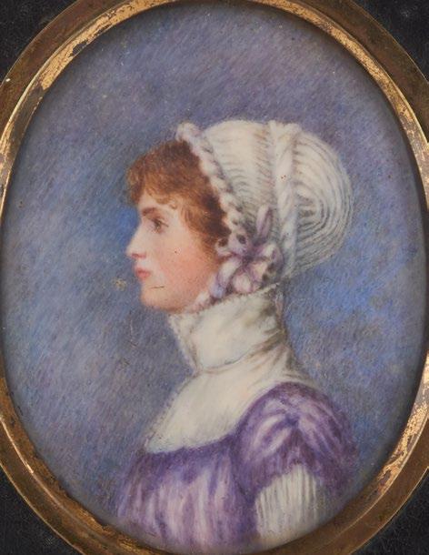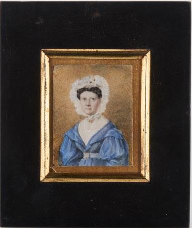 Miniature Portrait of Mrs Sophie Wiseman paint on ivory inscribed in ink to verso, black lacquer frame of the period and signed and dated 1833 to the sleeve of the lady's dress