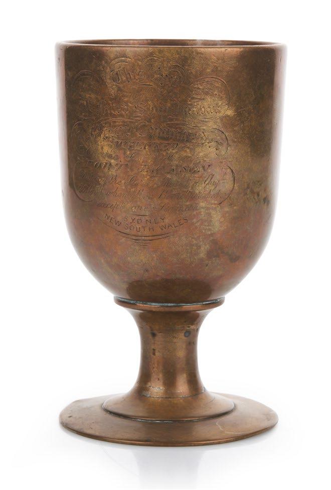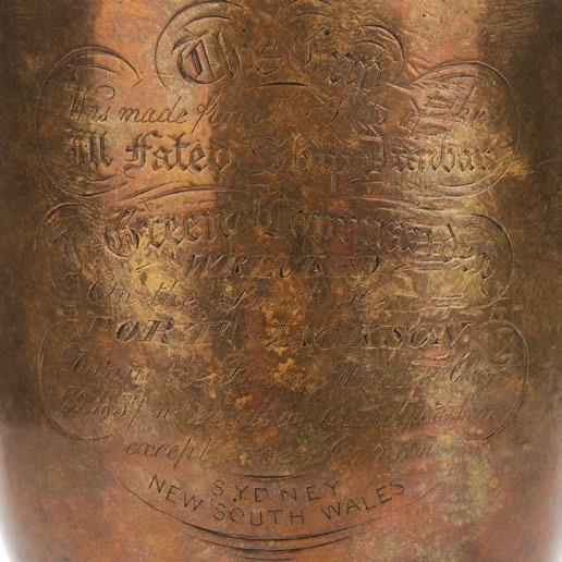 A historically significant solid brass cup made from the bolts of the wreck of The Dunbar, Sydney, soon after the tragedy on August 20, 1857, Australian, dated 1857