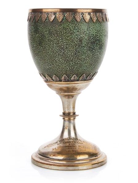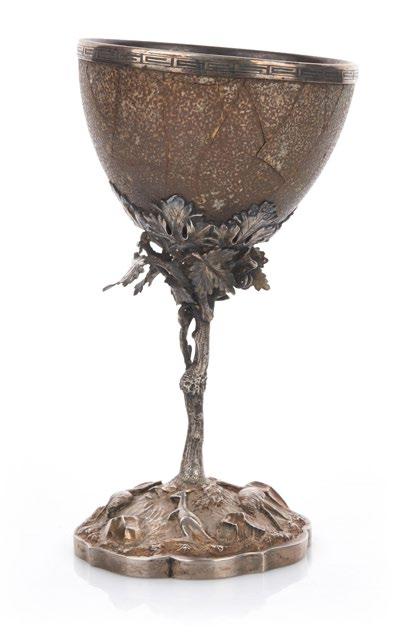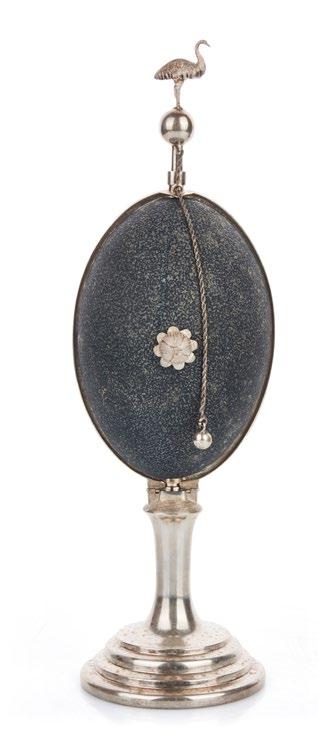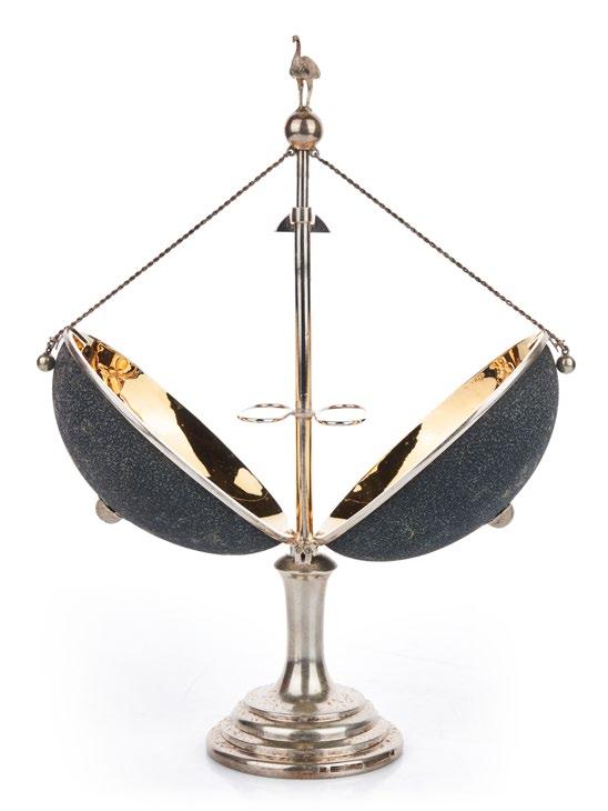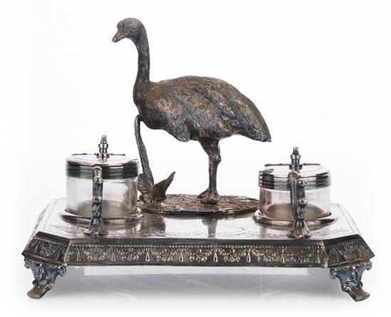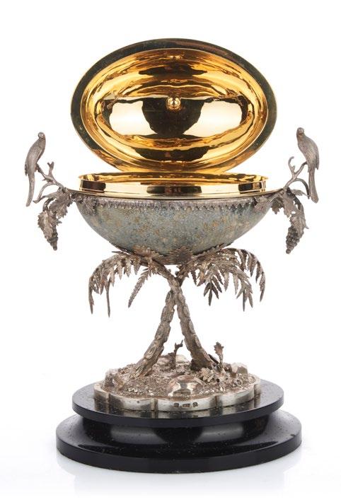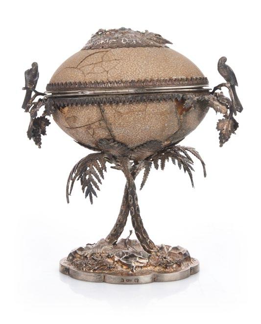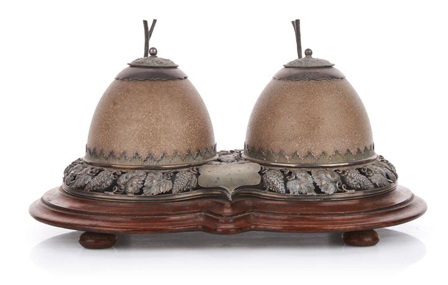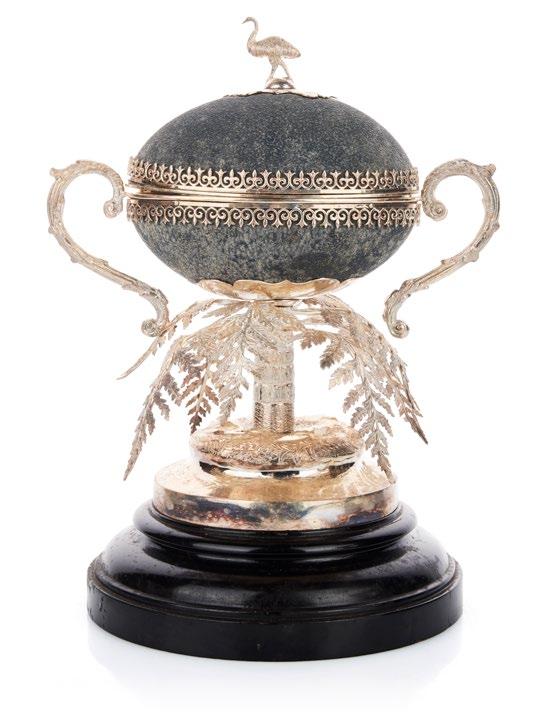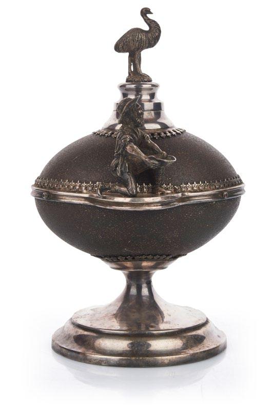 A silver-plated and carved emu-egg presentation inkwell, Australian, 19th century