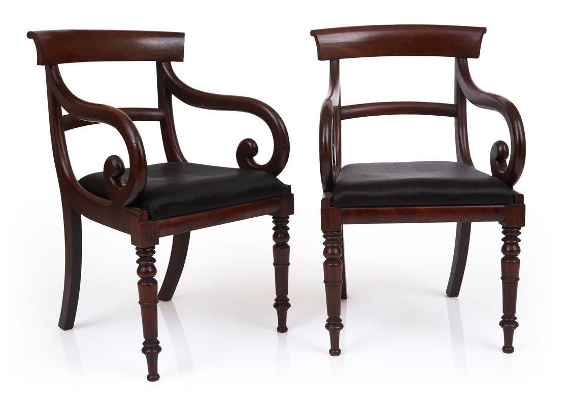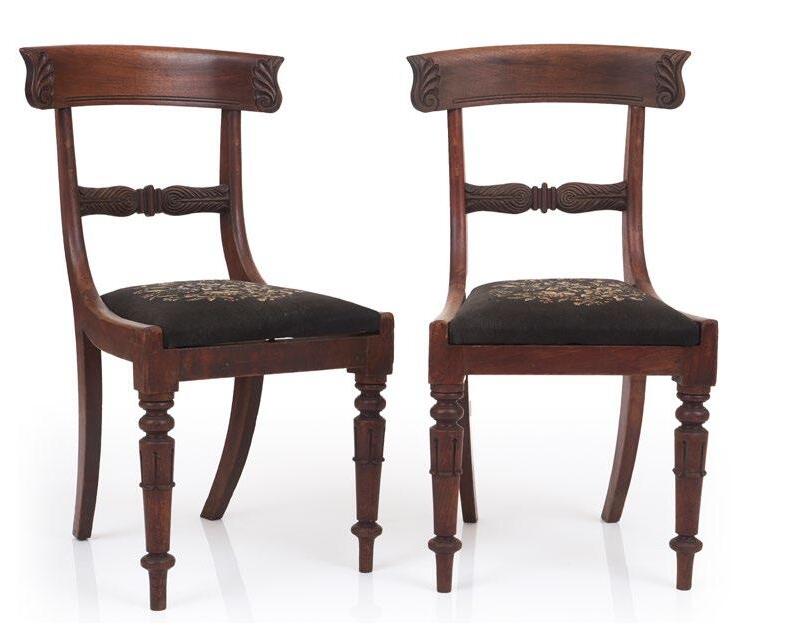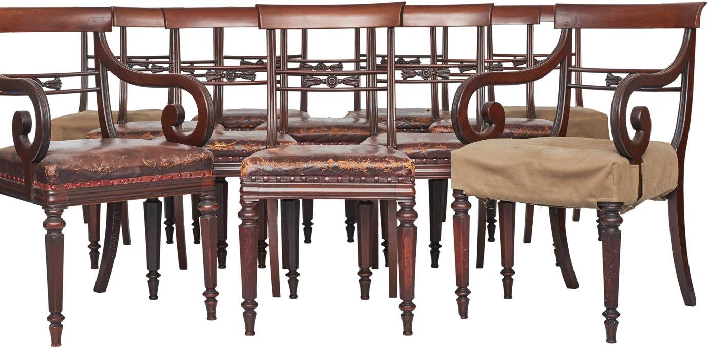 A set of twelve good quality George IV mahogany dining chairs, English, circa 1830 two carvers and ten standards