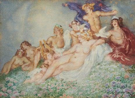 The Gods of Olympus watercolour unsigned 28 x 36cm
